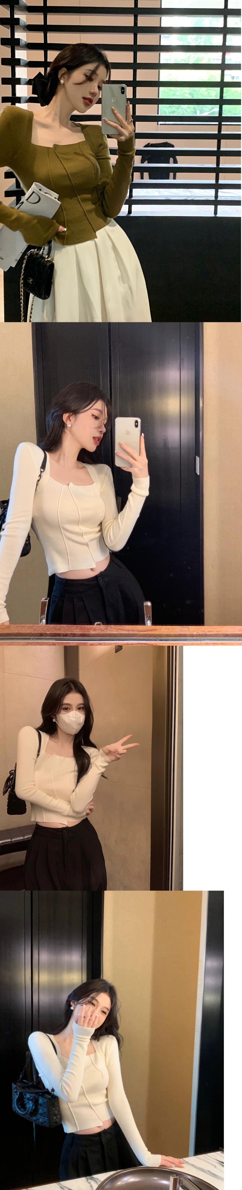 センスニッチ不規則なスクエアカラー Tシャツ女性の春と秋の 2023 新作ショートセクションスリムスリムボトムシャツトップ スプリング 春物 オータム 秋物 スクウェア 0921971645378959