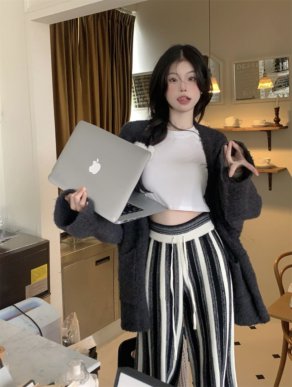 インターネットセレブトレンディなフライドストリートファーコート女性の春と秋2023新しい怠惰なスタイルオールマッチ痩身長袖ニットカーディガン ロング スプリング 春物 オータム 秋物 0921951843062857