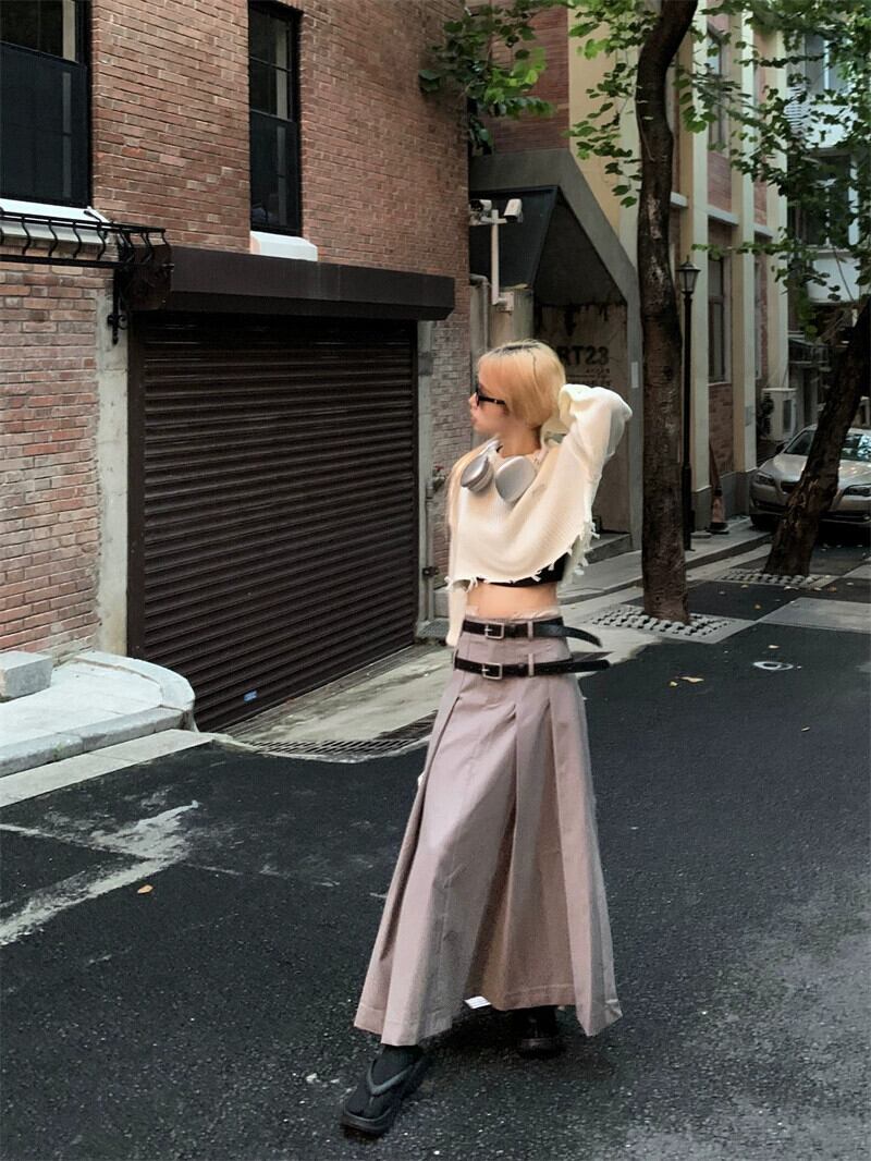 スタイルレトロデザインスカート女性の夏の 2023 新しいハイウエストルーズスリムミッドレングスプリーツスカート ハイウェスト サマー 夏物 0921982893006501