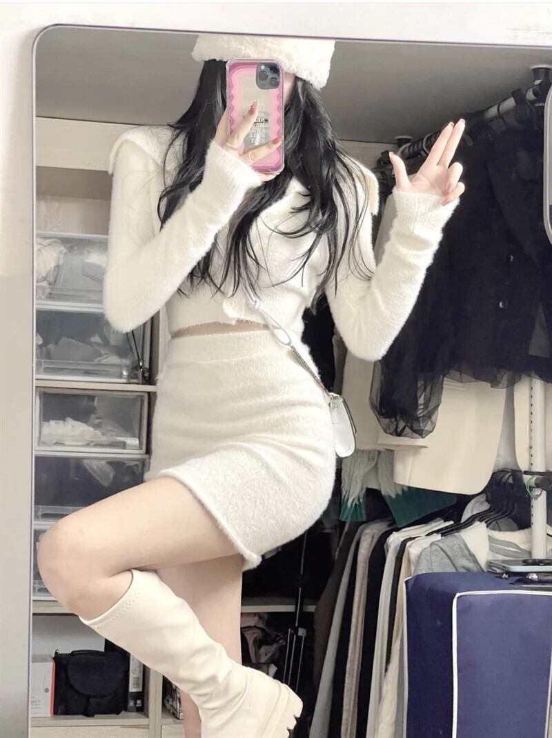 純粋な欲望気質スーツ女性早春 2023 新しい抗ミンクベルベットニットカーディガンハイウエストバッグヒップスカート 2 点セット ハイウェスト スプリング 春物 0921995758605410