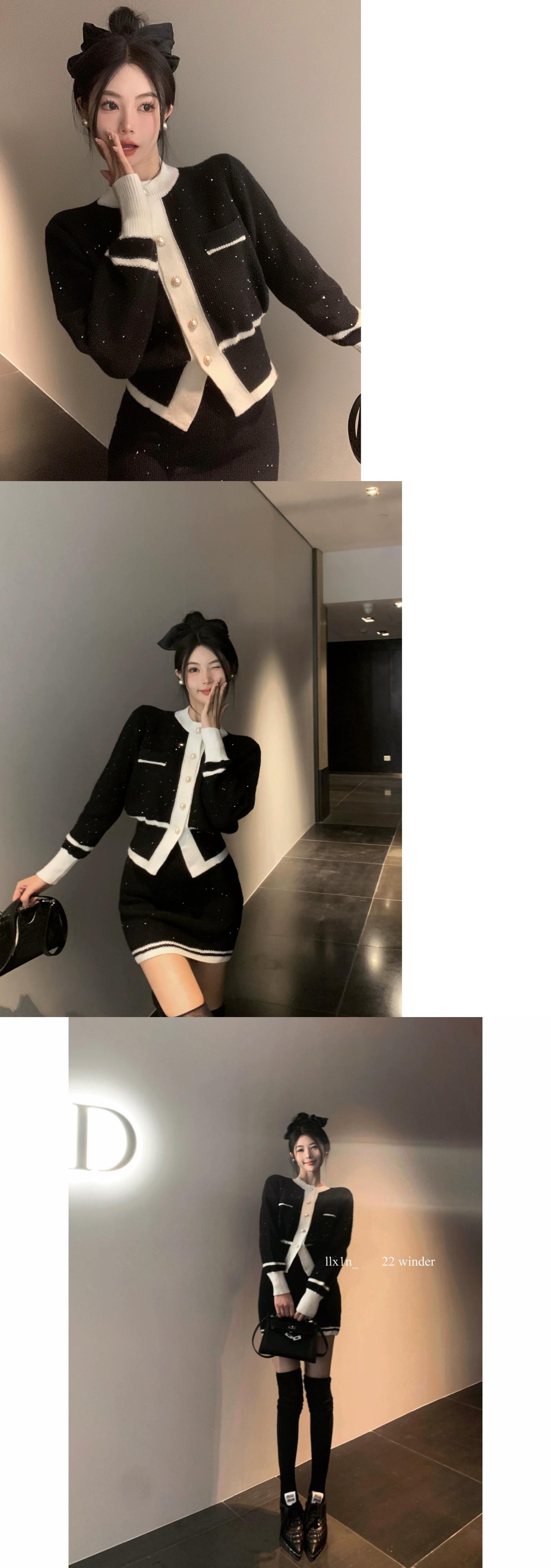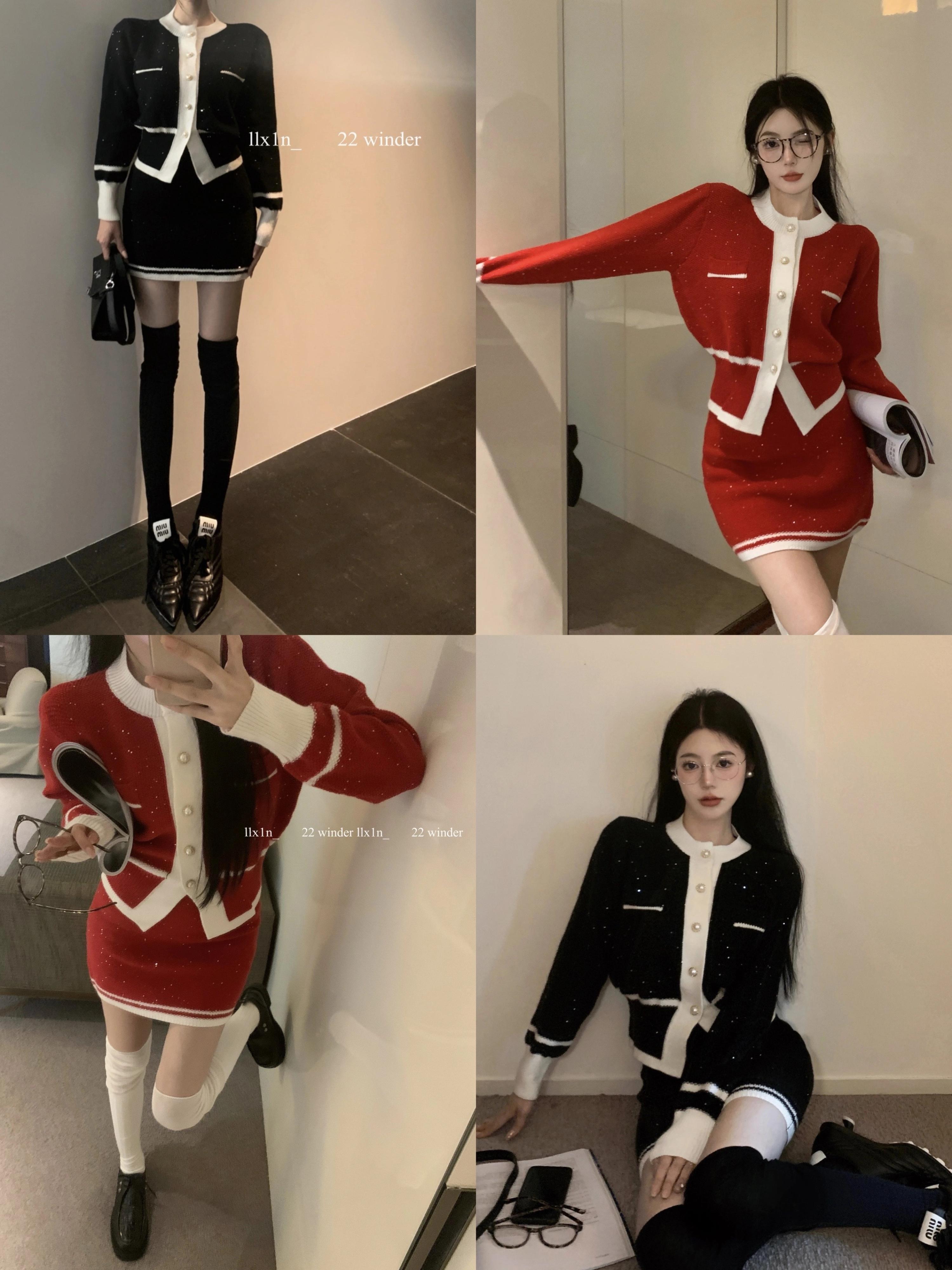 フランスのレトロな洋風スーツスカート女性の 2023 冬の新しい小さな香りの風のセータージャケットハーフレングススカート 2 点セット ウィンター 冬物 0921939993178994