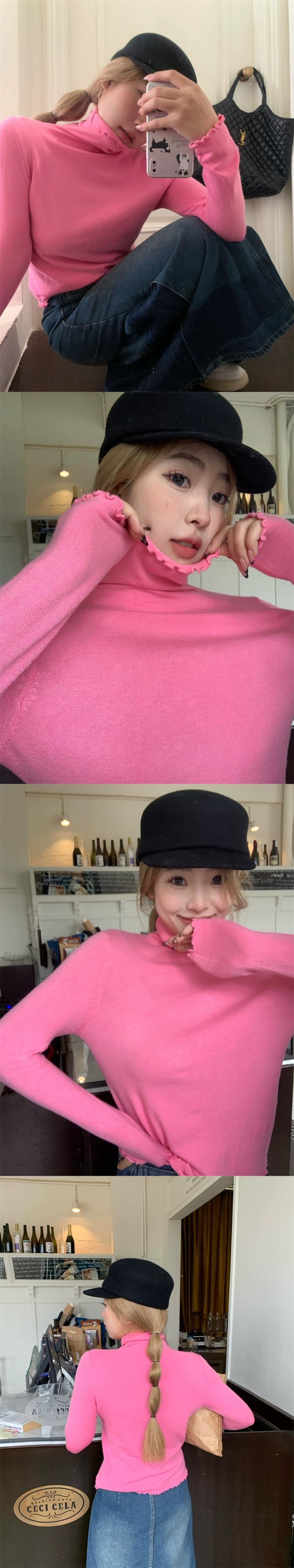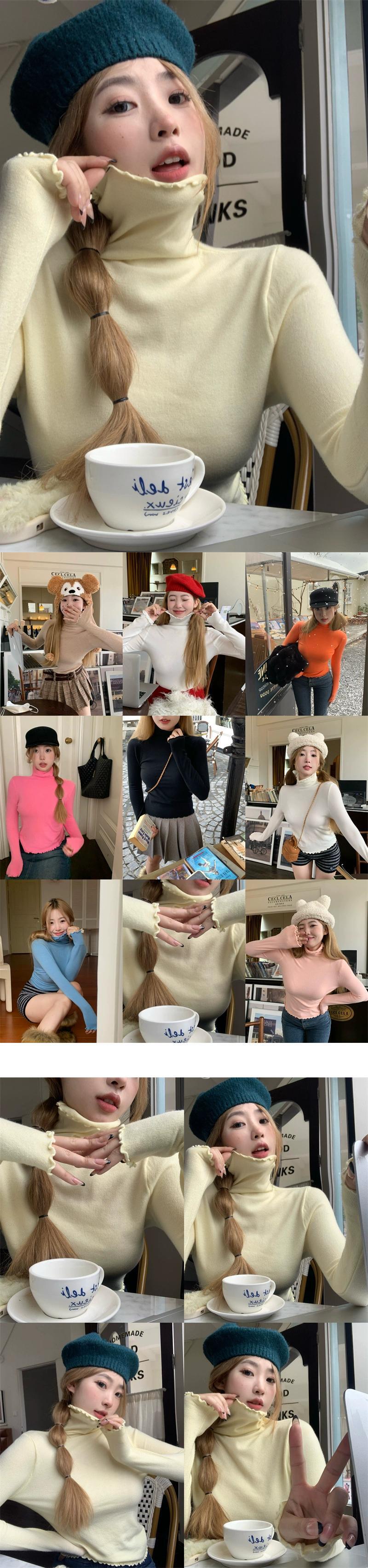 老化を軽減する木耳ハイネックニットセーター女性の 2023 年春と秋の新しいソリッドカラーオールマッチ痩身と薄底シャツ スプリング 春物 オータム 秋物 0921986072123330