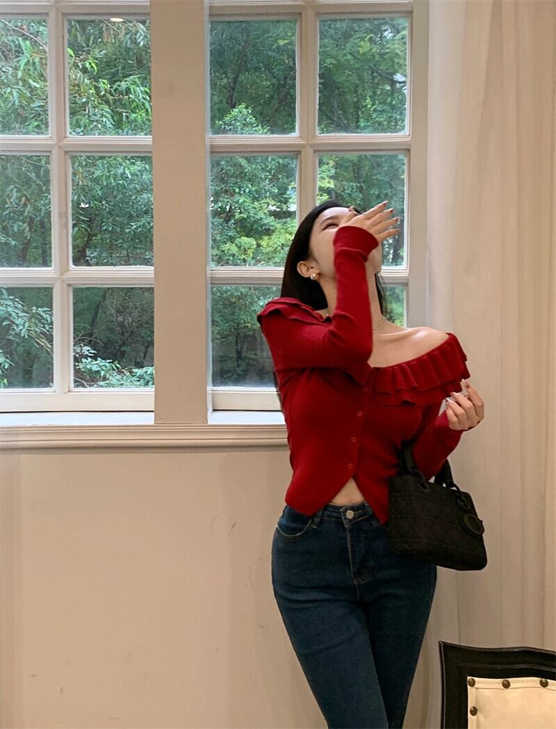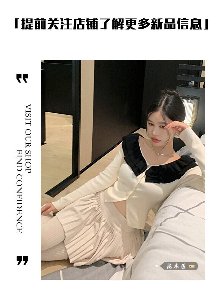 フランスの気質フリル無地ニットカーディガン女性の春と秋の 2023 新しいファッショナブルなスリムスリムショートセーター スプリング 春物 オータム 秋物 ソリッドカラー 0921997950699410