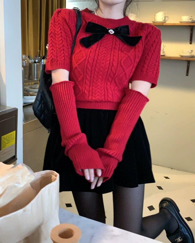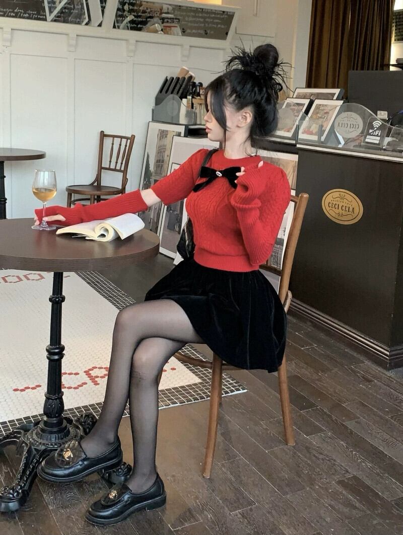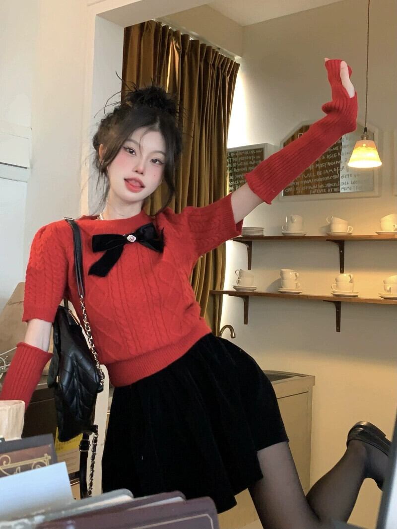 クリスマスレッドの雰囲気を感じる老化プルオーバーセーター女性の春と秋の2023新しいスリムツイストボウニットセーター リボン スプリング 春物 オータム 秋物 0921942792322979