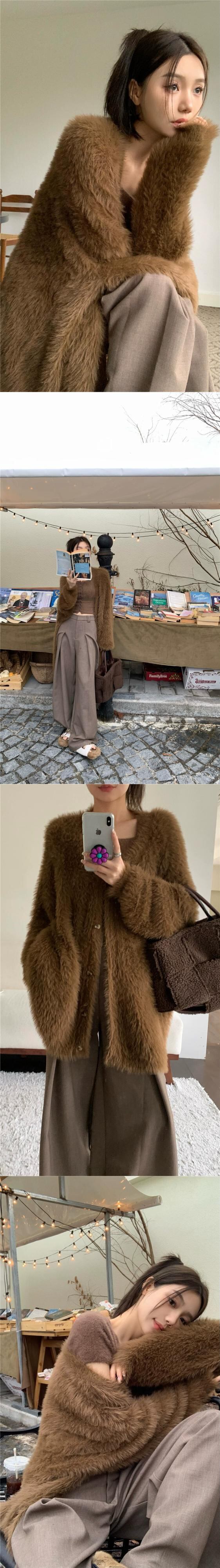 怠惰なスタイルのルーズ模造ミンクフリースセーターコート女性の冬の 2023 新しいミッドレングスファッショナブルなオールマッチ毛皮カーディガン ウィンター 冬物 0921912838800101