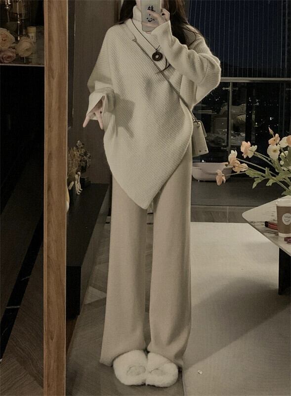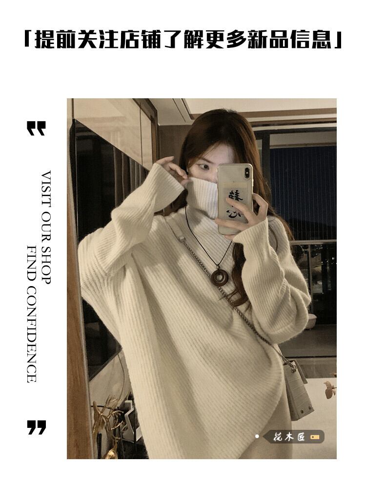 優しいスタイルの不規則なタートルネックセーターの女性の 2023 冬の新しいルーズで汎用性の高いニッチな怠惰なスタイルのニットトップ ウィンター 冬物 0921932131657900