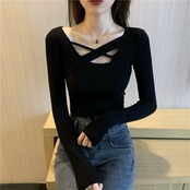 センス気質オールマッチクロス長袖 Tシャツレディース 2023 春新作スリムスリムファッションボトリングトップ ロング スプリング 春物 0921960742217323