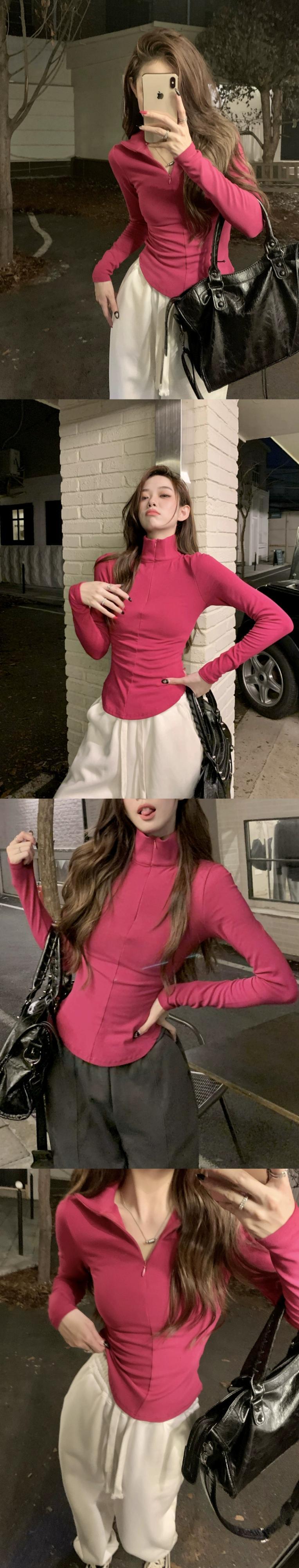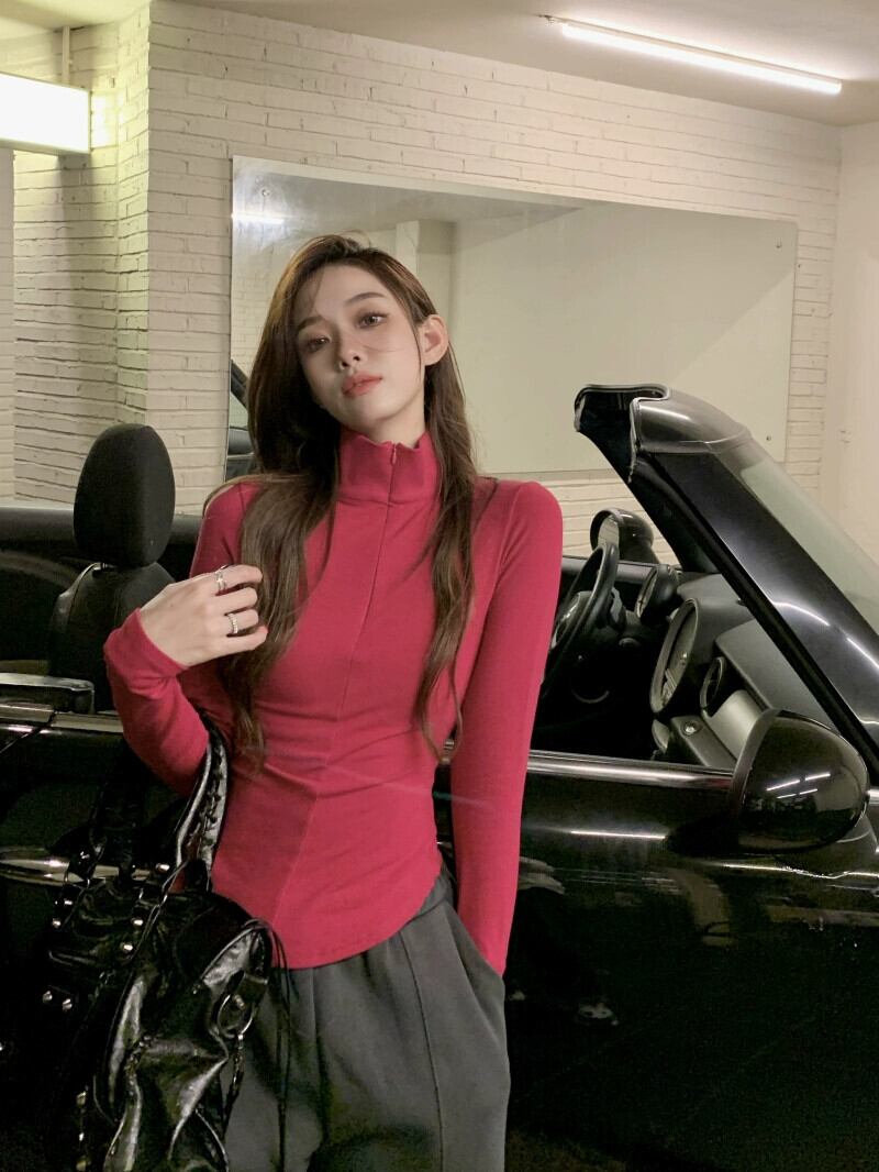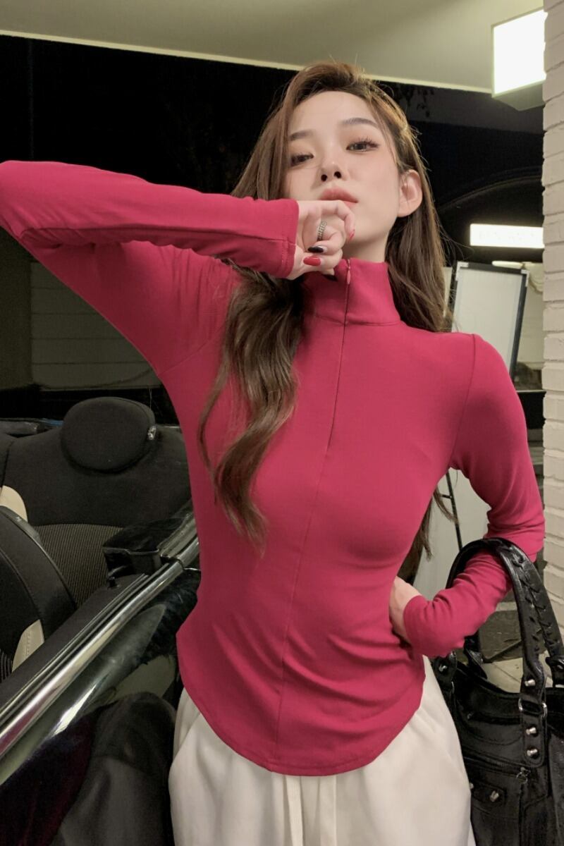 純粋な欲望の風ハイカラー暖かい長袖 T シャツの女性の春と秋の無地の内側と外側の摩耗自己修養と薄いトップ ボトム シャツ ロング スプリング 春物 オータム 秋物 Tシャツ ソリッドカラー 0921990581943926