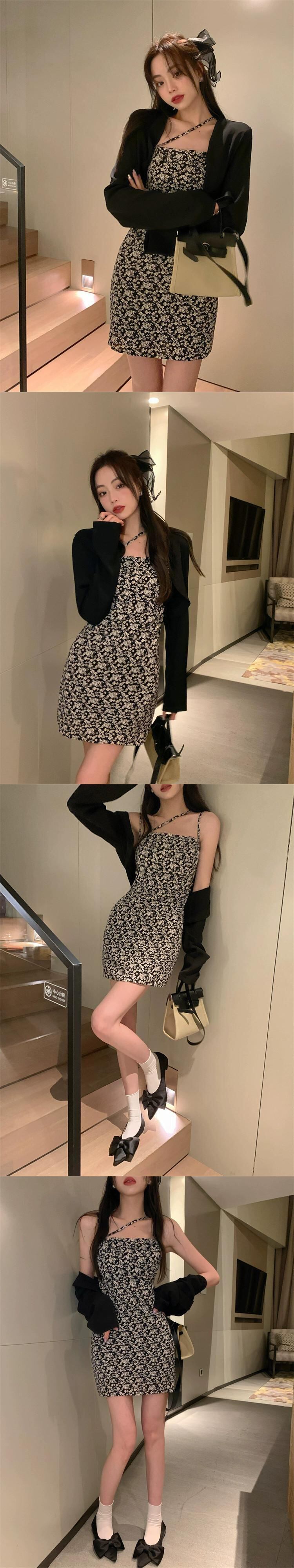フランスの甘くてスパイシーな花柄スリングドレスの女性の夏の 2023 新しい純粋な欲望自己修養痩身ヒップショートスカート 大人ガーリー スウィート キュート カジュアル サマー 夏物 ピュア 0921949851970844
