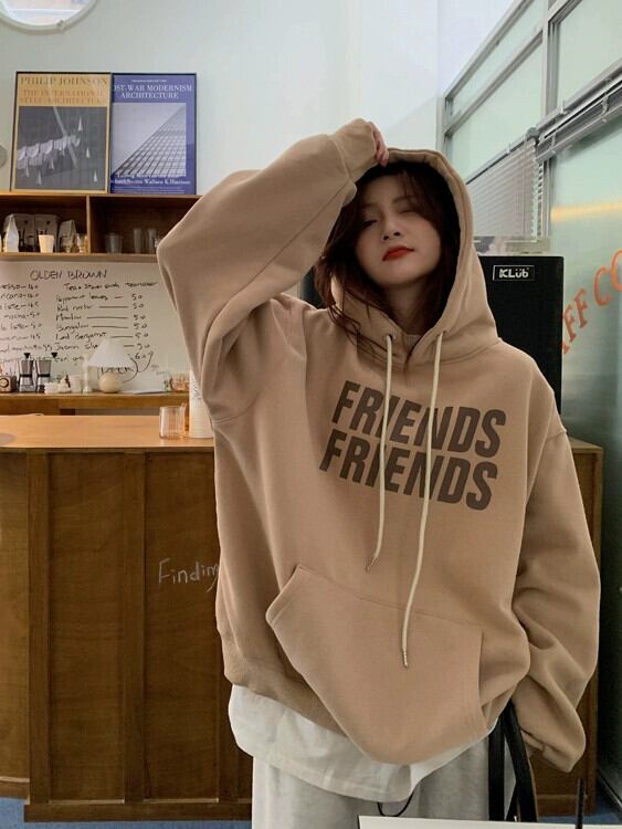 レトロな怠惰なスタイルのレタープリントのフード付きセーターの女性の 2023 年春の新しいルーズミッドレングス長袖トップ潮 ロング スプリング 春物 0921922056981513