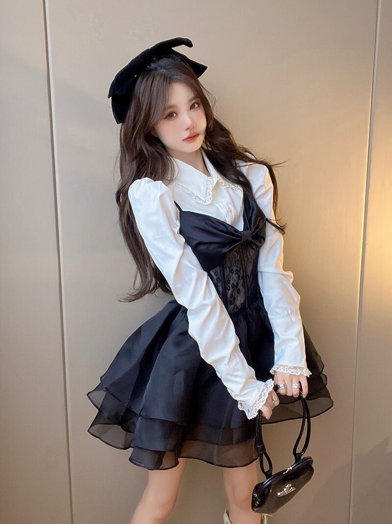 純粋な欲望のファッションスーツ女性の春と秋の 2023 新しいショートシャツスリムスリムサスペンダースカート 2 点セット スプリング 春物 オータム 秋物 0921914069041177
