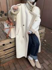 ニッチなデザインセンス模造ラムウールコットンコート女性の 2023 春と秋の新しいオールマッチミッドレングスルーズコットンコート潮 スプリング 春物 オータム 秋物 0921997860968896