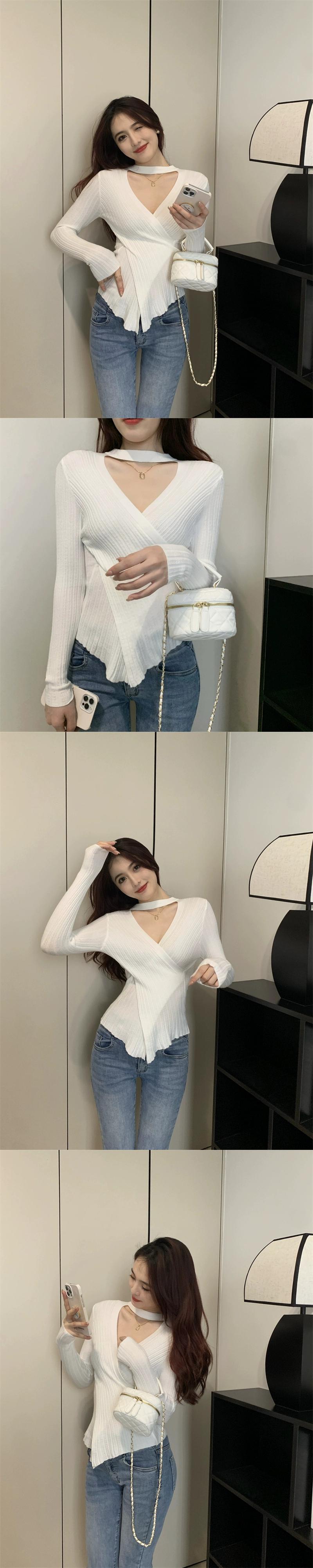 センス中空スリム長袖ニットセーター女性の春と秋の 2023 新しい無地オールマッチ不規則な底トップ ロング スプリング 春物 オータム 秋物 ソリッドカラー 0921946860211181