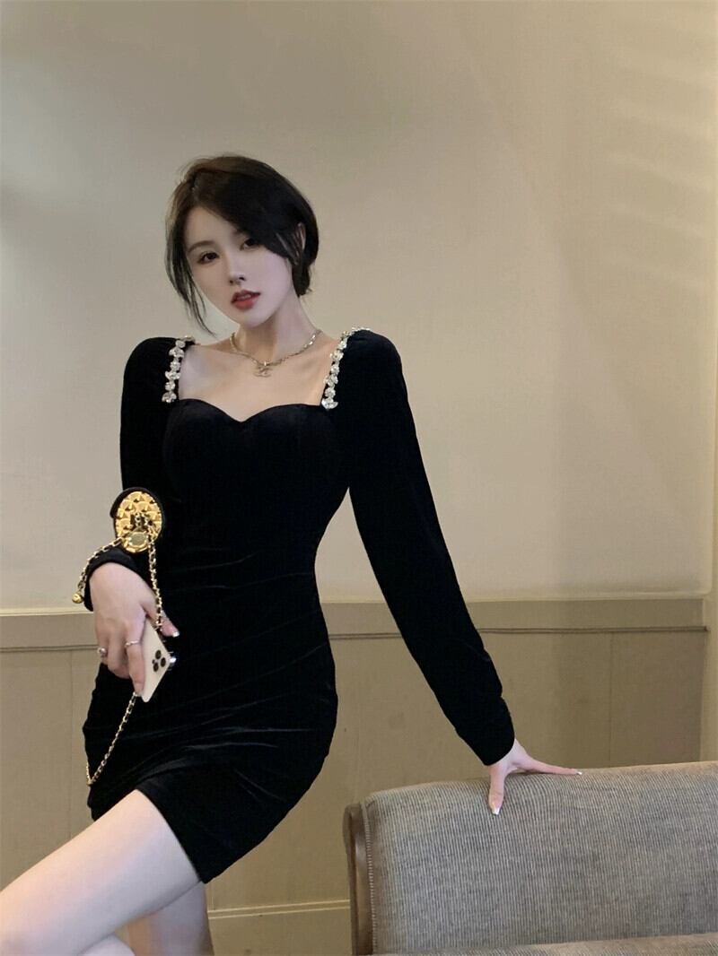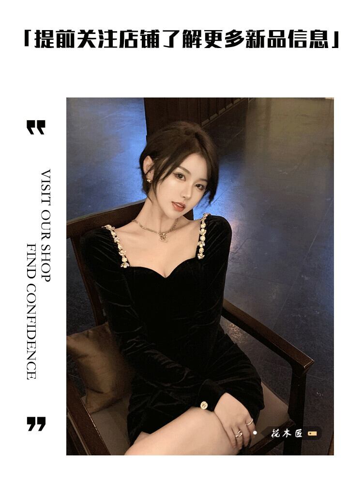 レトロヘップバーンスタイルベルベットドレス女性の冬 2023 新しいフレンチスタイルウエスト痩身バッグヒップリトルブラックドレス ウィンター 冬物 0921960614599039
