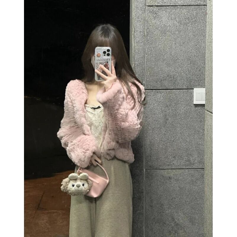 ピンクミルクフフぬいぐるみショートコート婦人服2023春新スタイルルーズハイエンドカーディガントップ スプリング 春物 0921959803640178