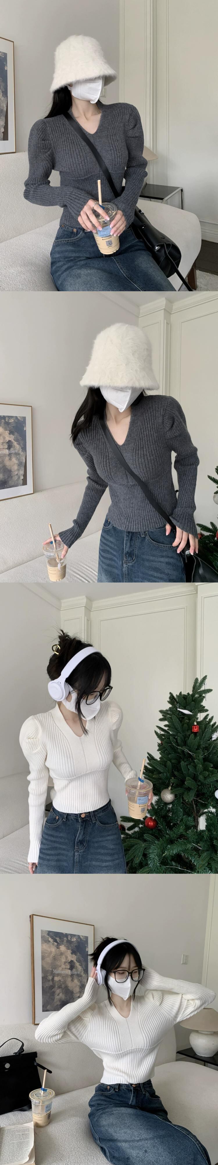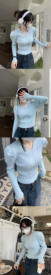 気質 V ネック パフ スリーブ ニット セーター レディース 2023 春の新作オールマッチ自己修養と薄底シャツ トップ スプリング 春物 Vネック 0921924633871677
