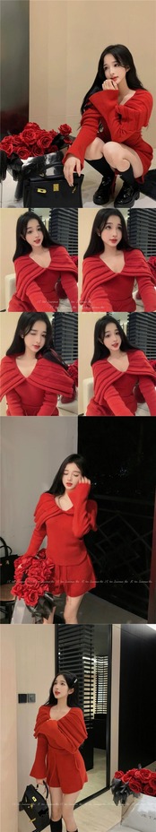 純粋な欲望スタイルのレトロな赤ニットスーツの女性の春と秋のニッチラペルセーター巾着ハイウエストショーツツーピース潮 ハイウェスト レッド スプリング 春物 オータム 秋物 ブルマー 092192234568697