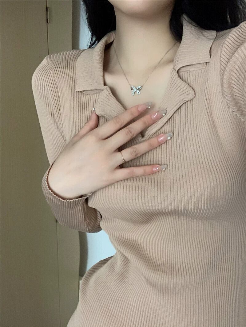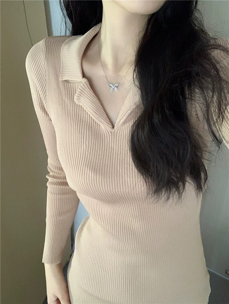 純粋な欲望 V ネックスリム長袖ニットドレス女性の春と秋のインナーウエストウエストセクシーなミッドレングスラップヒップスカート ロング スプリング 春物 オータム 秋物 Vネック 0921952065083455