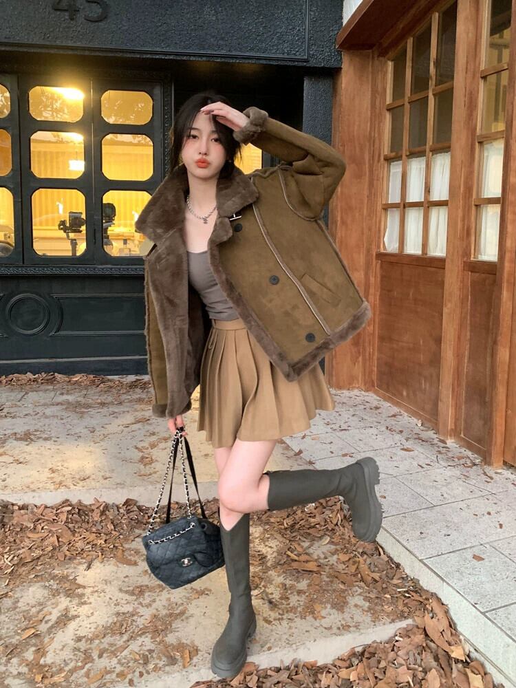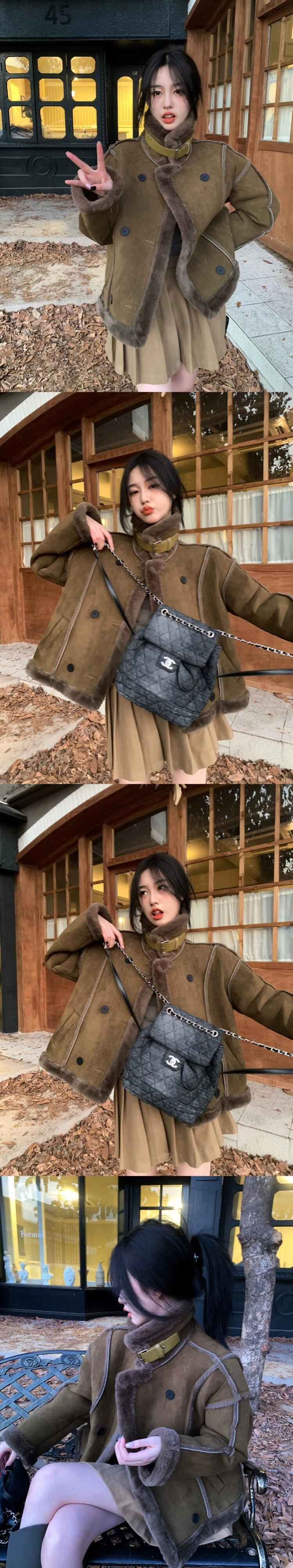 レトロ厚い模造ラムウールスタンドアップカラーウールコート女性の冬の 2023 新しいスプライシングファーカーディガントレンド ウィンター 冬物 0921951472027713
