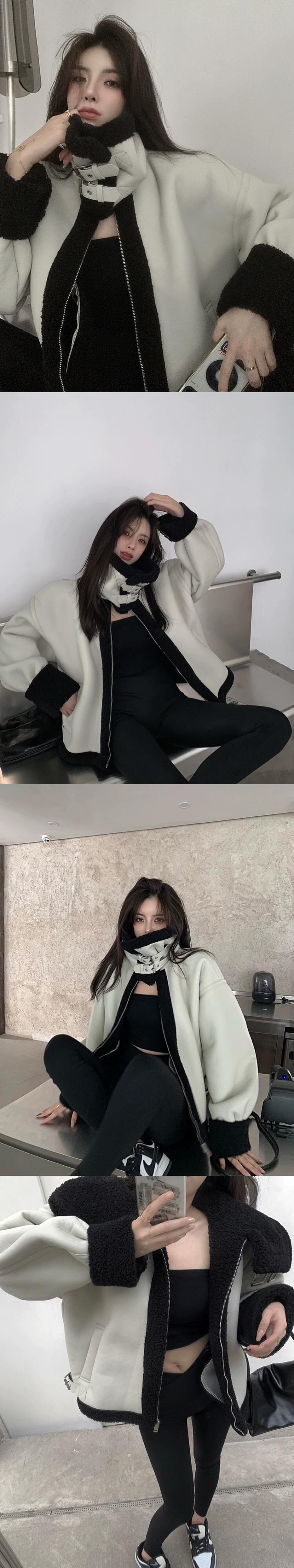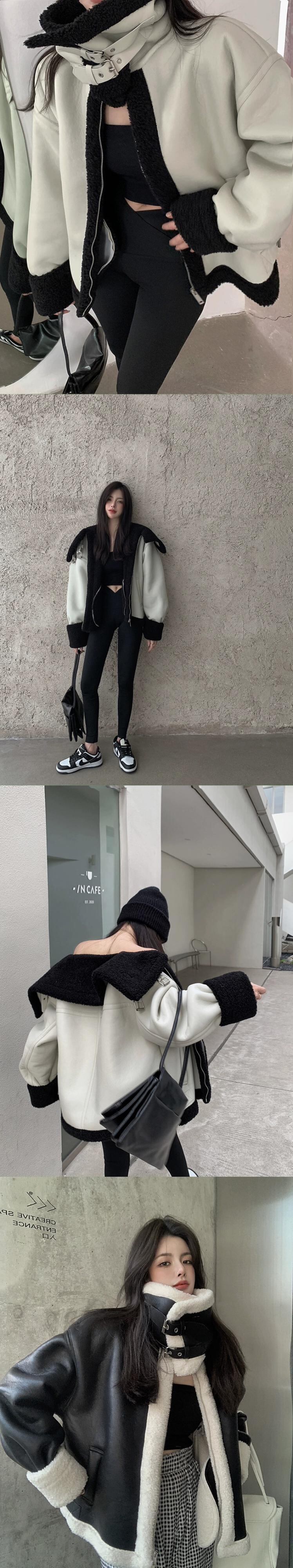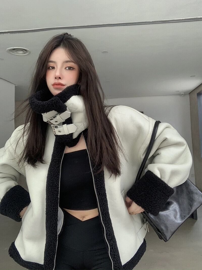 模造子羊ベルベットプラスベルベット肥厚レザージャケット女性の春と秋の 2023 新作ゆったりと薄手の長袖カーディガントップ潮 ロング スプリング 春物 オータム 秋物 0921912622823685