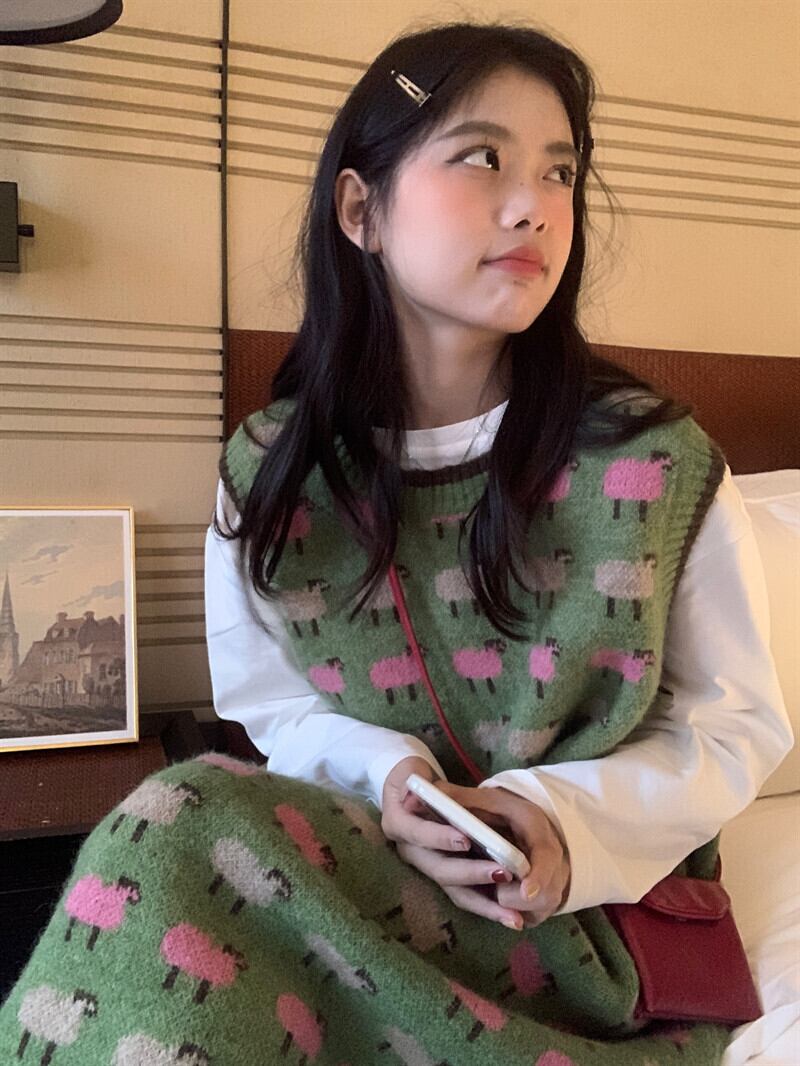 レトロ ese ジャカードニットノースリーブドレス女性の春と秋 2023 新しいオールマッチルーズスリムベストスカート潮 スプリング 春物 オータム 秋物 0921995871019215