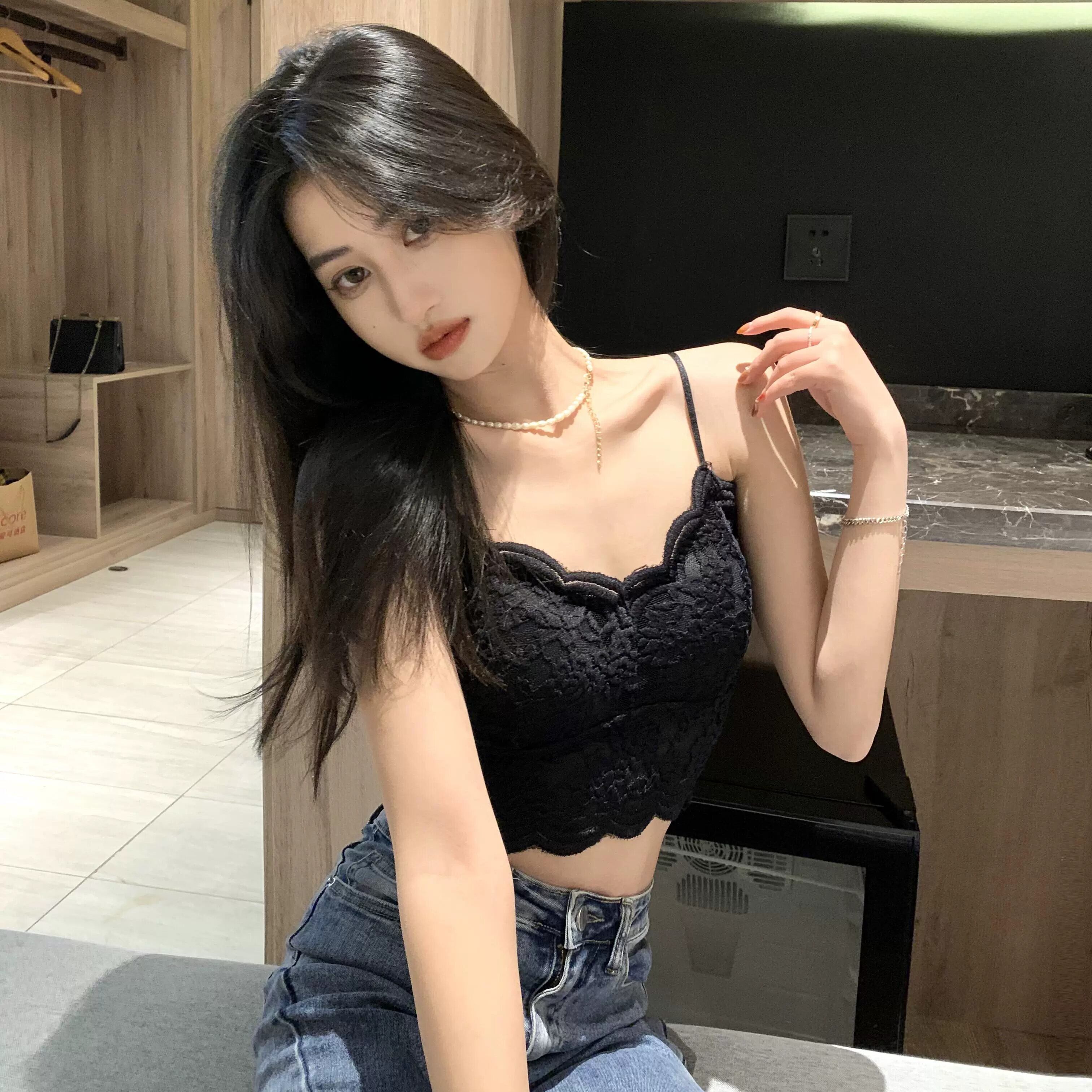 純粋な欲望セクシーなレースレースキャミソール女性の夏 2023 新しい甘くてスパイシーなスタイルスリムフィットノースリーブトップ 大人ガーリー スウィート キュート カジュアル サマー 夏物 0921980696299009
