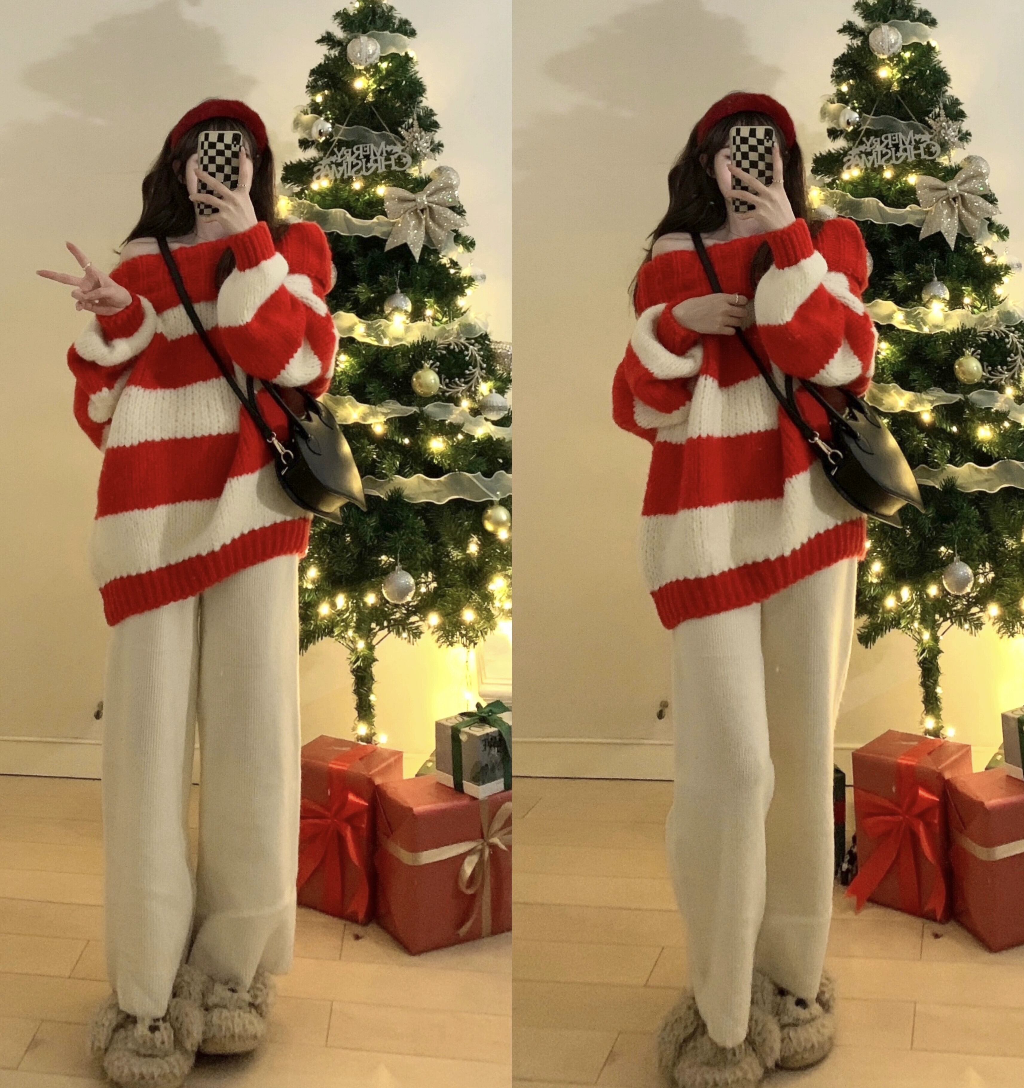 甘くてスパイシーなスタイルの厚みのあるカラーコントラストストライプセーター女性の 2023 春と秋の新しい怠惰なスタイルのプルオーバーワンショルダーニットトップ 大人ガーリー スウィート キュート カジュアル スプリング 春物 オータム 秋物 0921929135012701