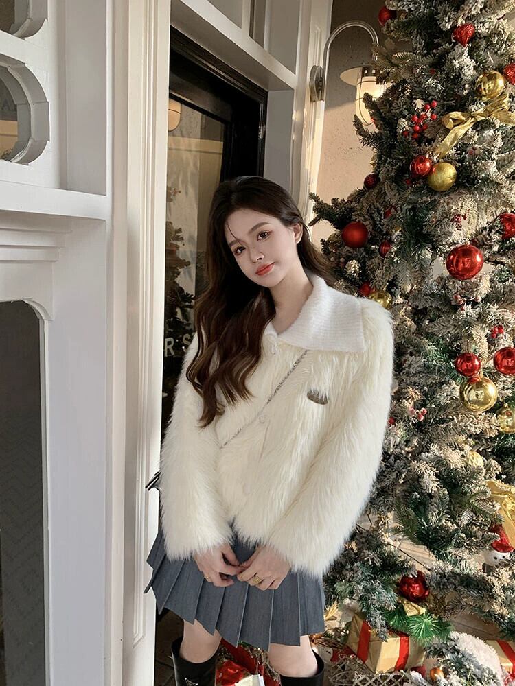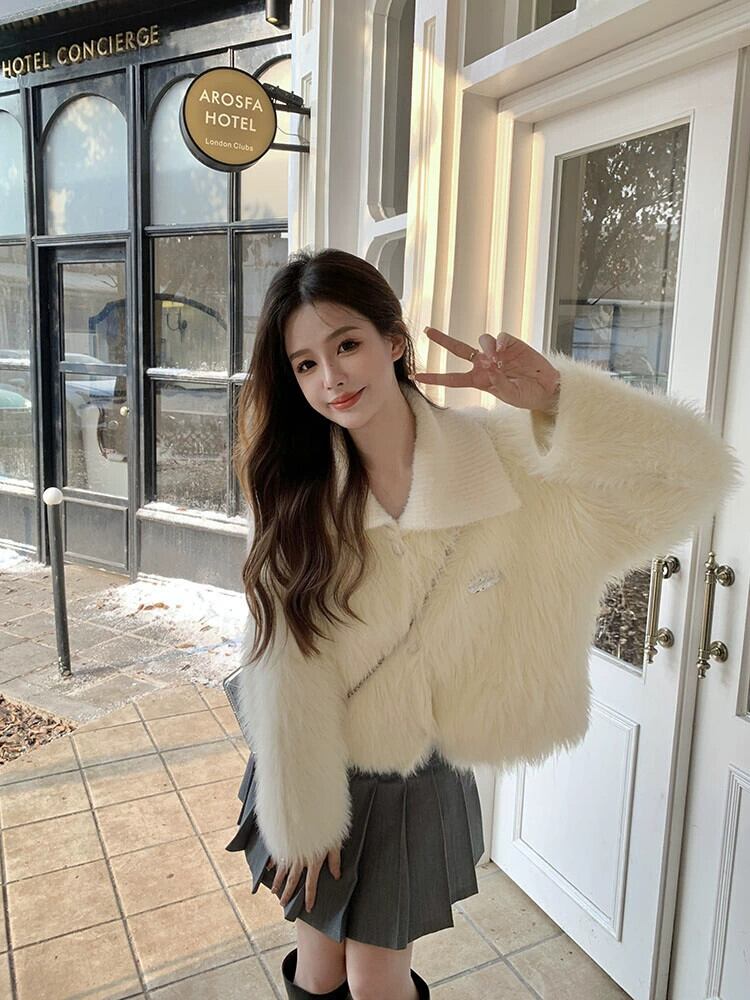 模造ミンクベルベットの小さな香りのよい風ぬいぐるみ厚い毛皮のコートの女性の春と秋の 2023 新しいショートニットカーディガントップ スプリング 春物 オータム 秋物 0921929232475137
