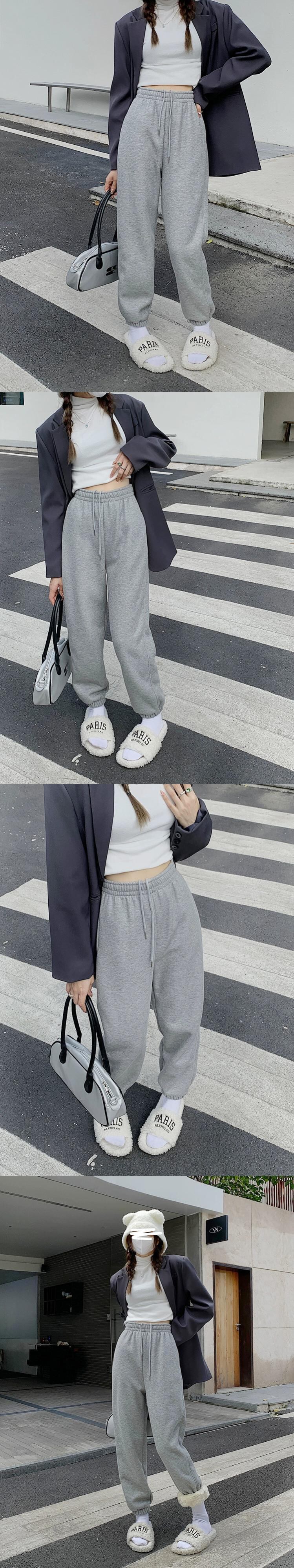 ストラップ弾性ハイウエスト模造子羊ベルベット肥厚カジュアルパンツ女性の春と秋 2023 新しいオールマッチルーズで薄いパンツ ハイウェスト エラスティック 伸縮 スプリング 春物 オータム 秋物 0921942986745537