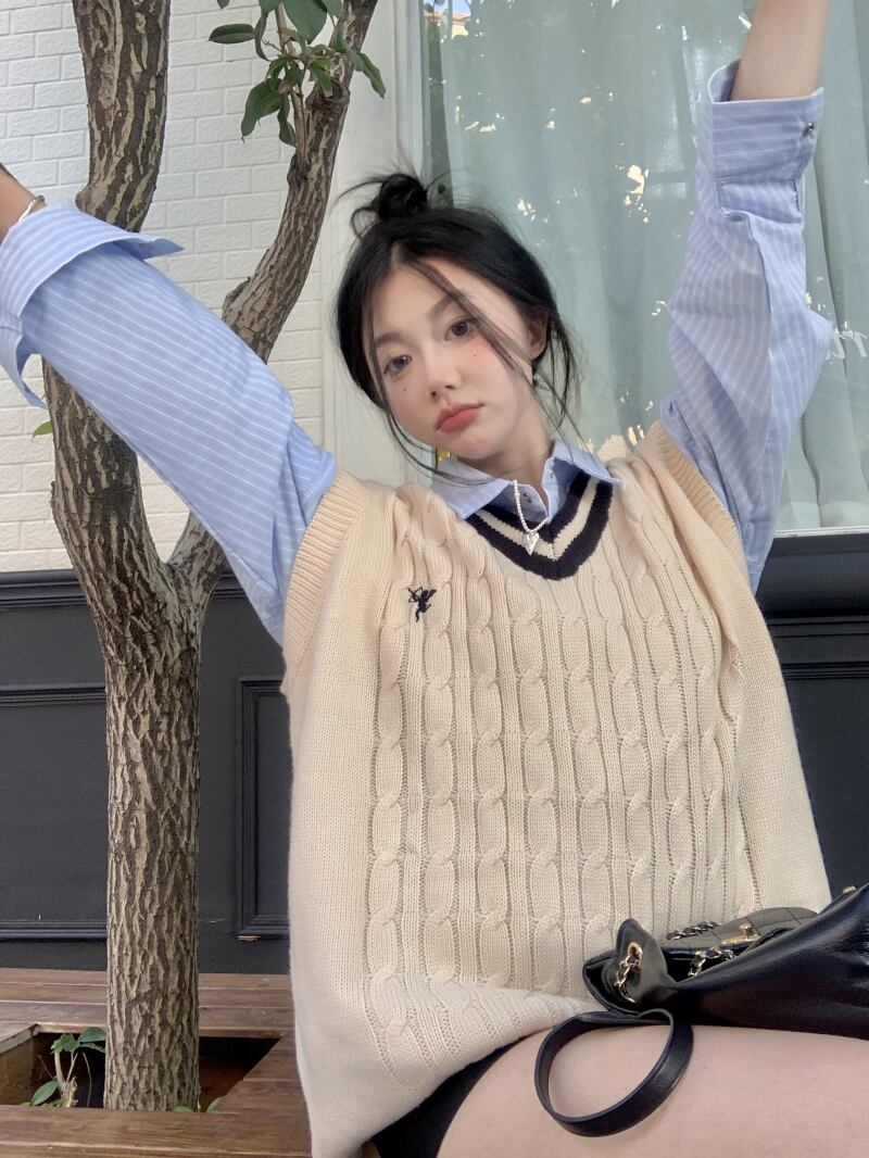スタイルカレッジスタイルカラー V ネックニットベスト女性の春 2023 新しい怠惰なオールマッチルーズレイヤードベスト レッド スプリング 春物 Vネック 0921946220733235