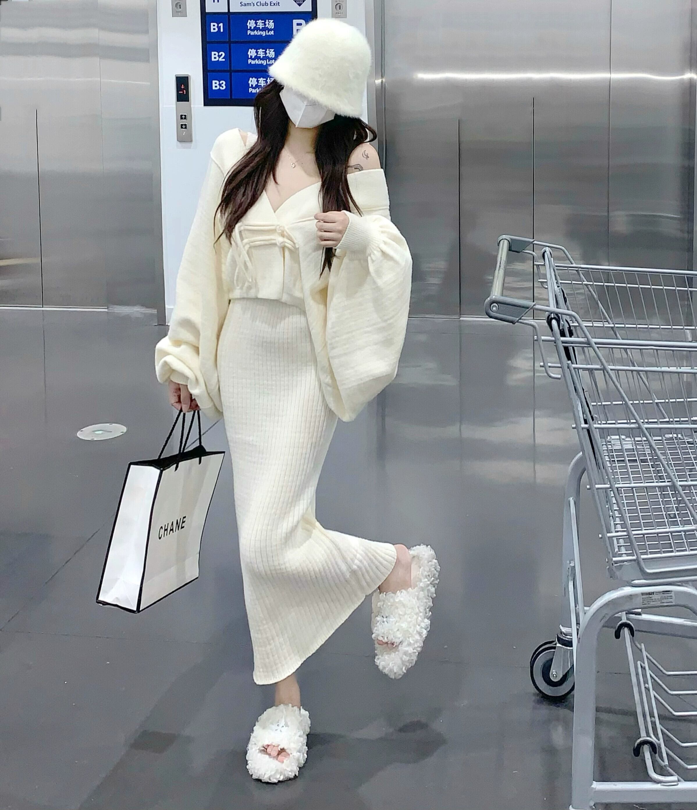 優しくエレガントなニットスーツスカート女性 2023 春の新作ルーズカーディガン V ネックサスペンダースカートツーピースイン スプリング 春物 Vネック 0921940653329983