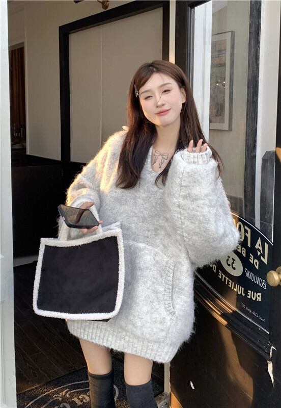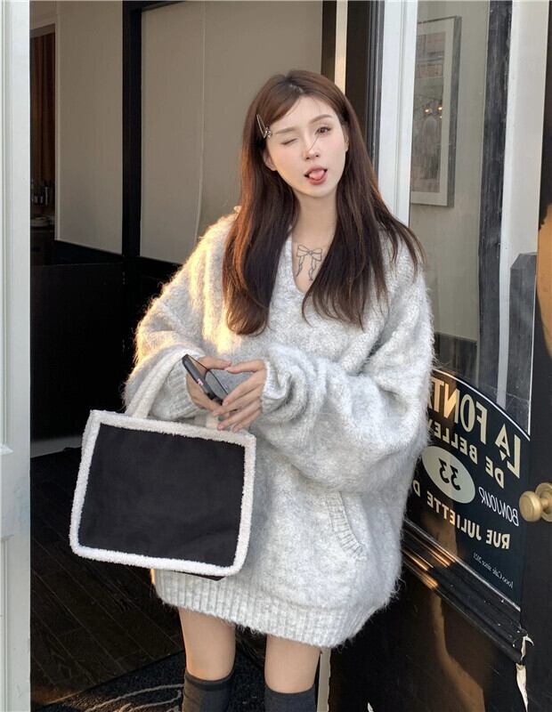 優しい風ソフトワックスラペルルーズ肥厚プルオーバーセーター女性の春と秋の 2023 新しいスリムミッドレングスニットセーター スプリング 春物 オータム 秋物 0921987601293293