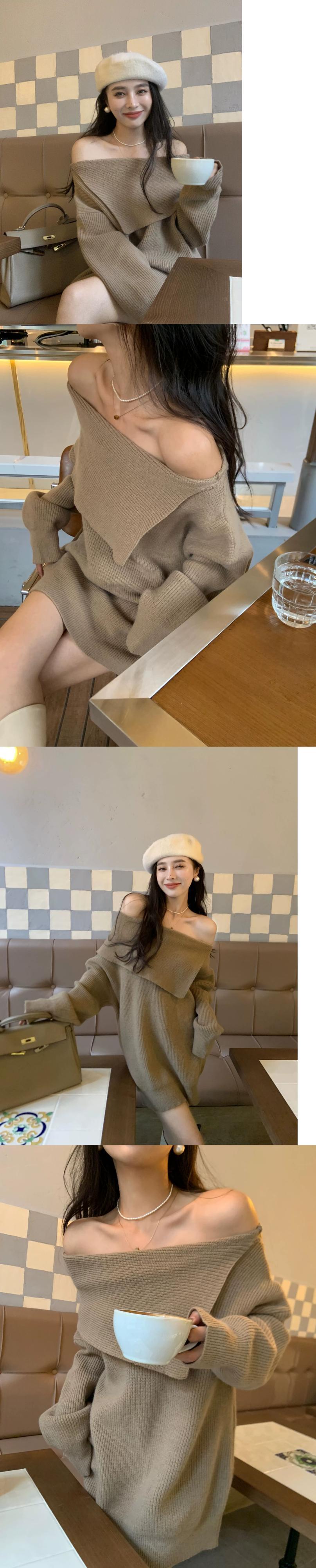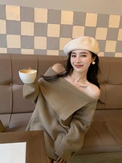レトロな気質セクシーな一言襟セーター女性の 2023 年春の新デザインファッションニッチニットトップ スプリング 春物 0921922717909142