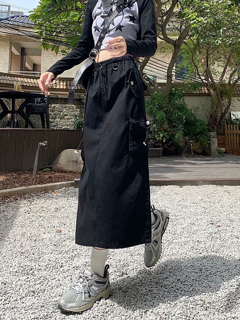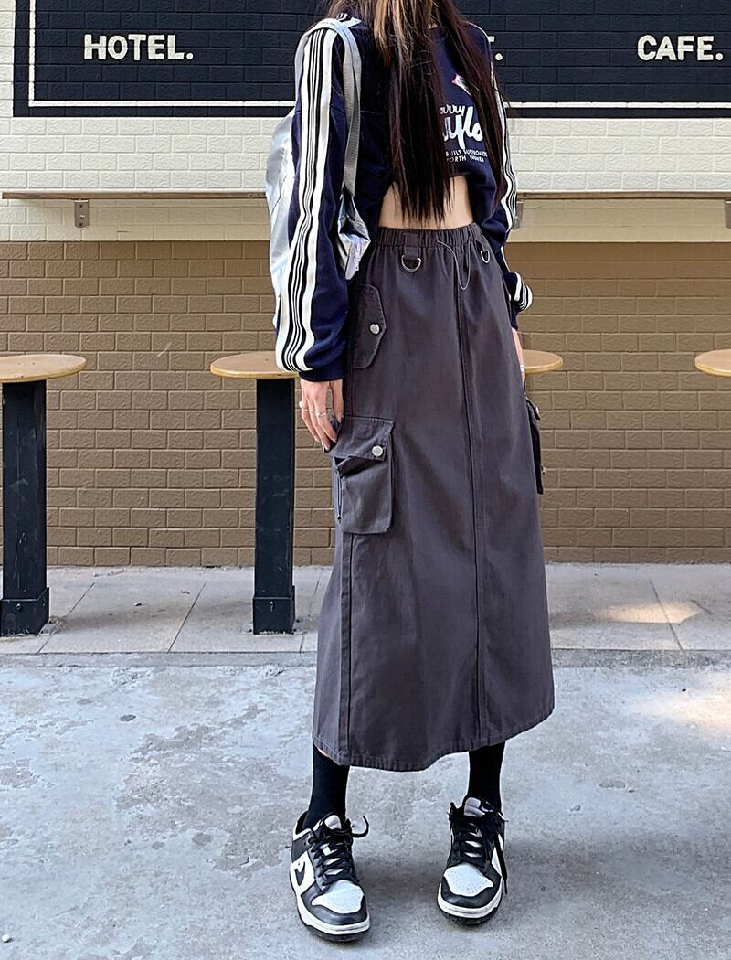 アメリカンストリートツーリングスカート レディース 2023春新作 ハイウエスト 着痩せデザイン ミドル丈 スリットスカート ハイウェスト スプリング 春物 0921952310870929