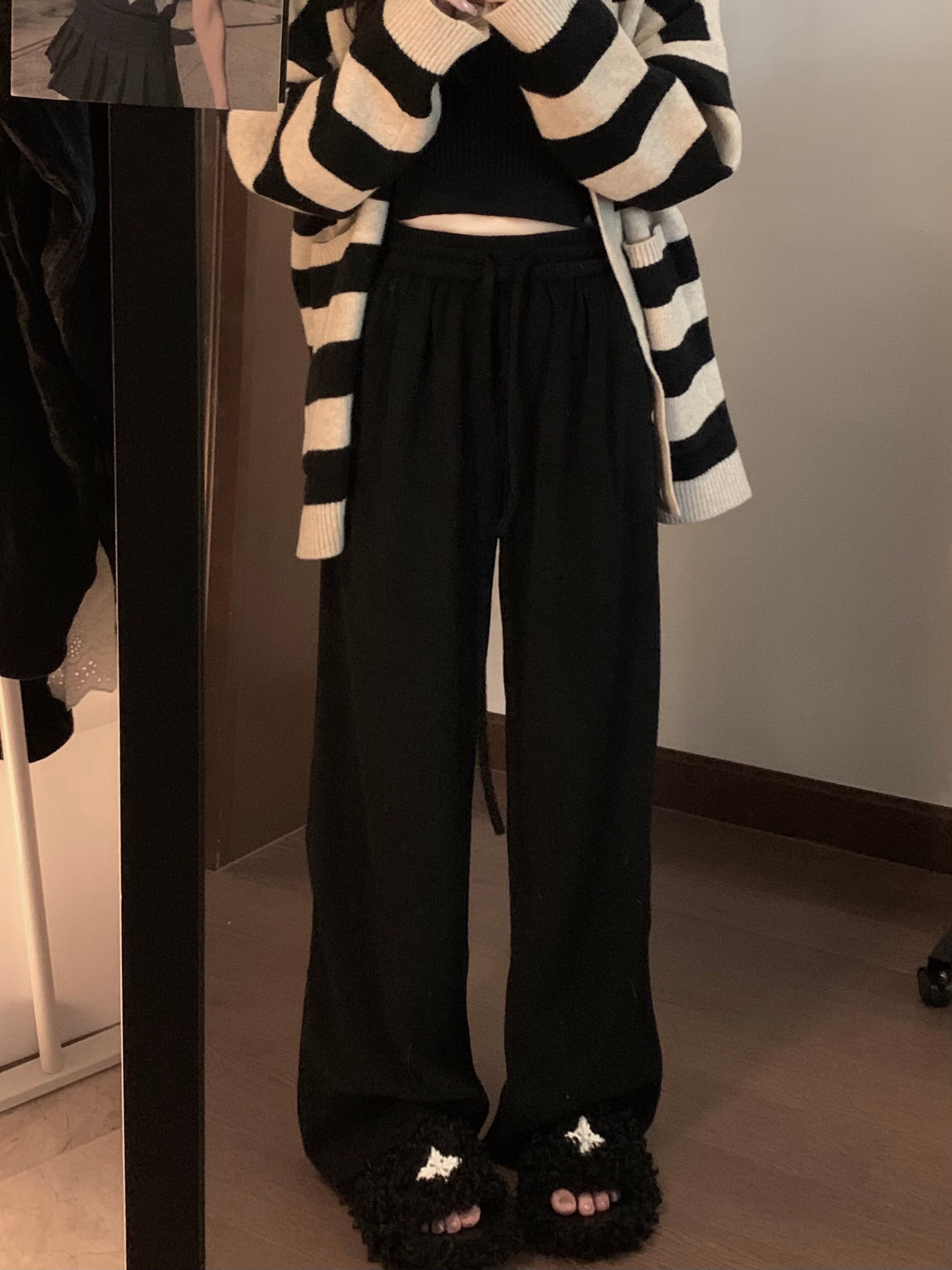 バージョンの無地オールマッチカジュアルパンツ女性の 2023 冬の新しいハイウエストルーズスリム弾性ウエストワイドレッグロングパンツ ハイウェスト エラスティック 伸縮 ウィンター 冬物 ソリッドカラー 0921988993734951