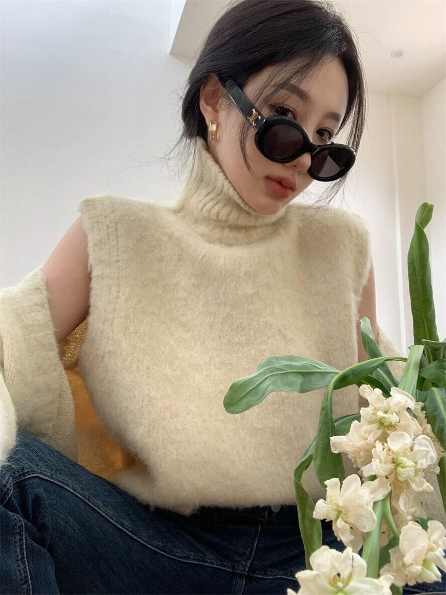 色:アプリコットベスト,アプリコットカーディガン,ピンクのベスト,ピンクのカーディガン