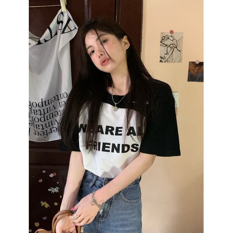 スパイスガール ステッチ半袖 Tシャツ レディース 夏 2023 レターラグラン袖 ウエストタイト スリム ショート トップ サマー 夏物 0921981501521538
