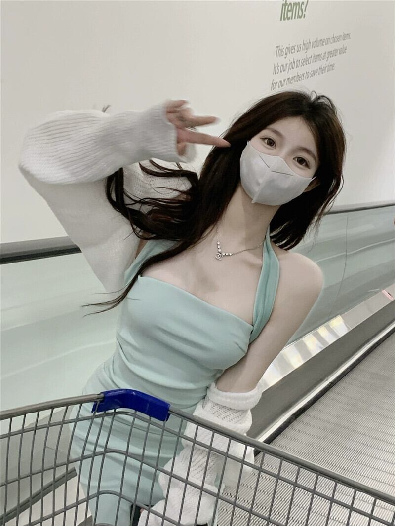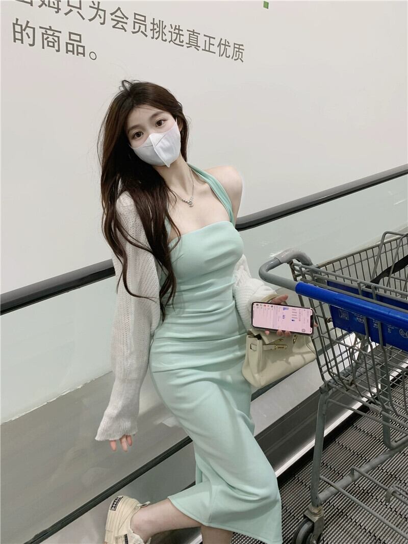 純粋な欲望風ハンギングネックドレス女性の夏の 2023 新しいウエストとスリムなボトムミッドレングススカート サマー 夏物 0921946498871294