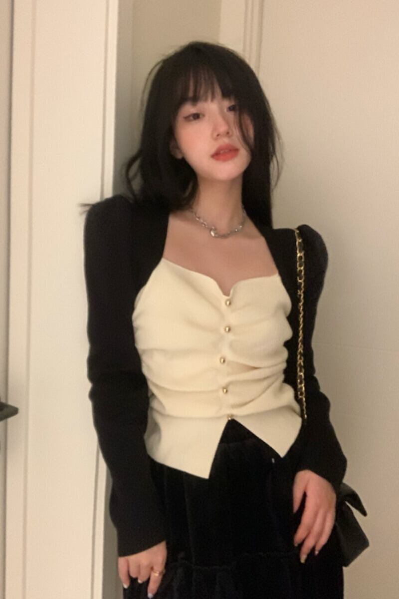 レトロなカラーマッチング肥厚ショートニットセーター女性の春と秋の2023新しいオールマッチ自己修養と薄い底シャツトレンディ スプリング 春物 オータム 秋物 0921919498831257