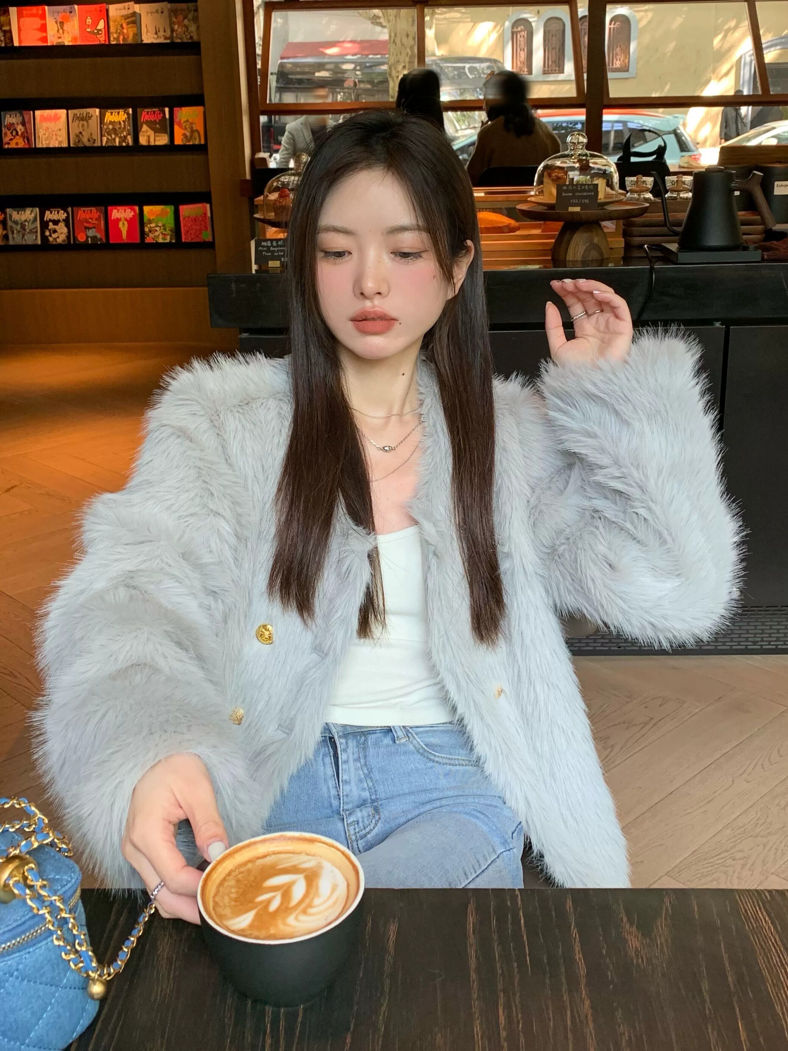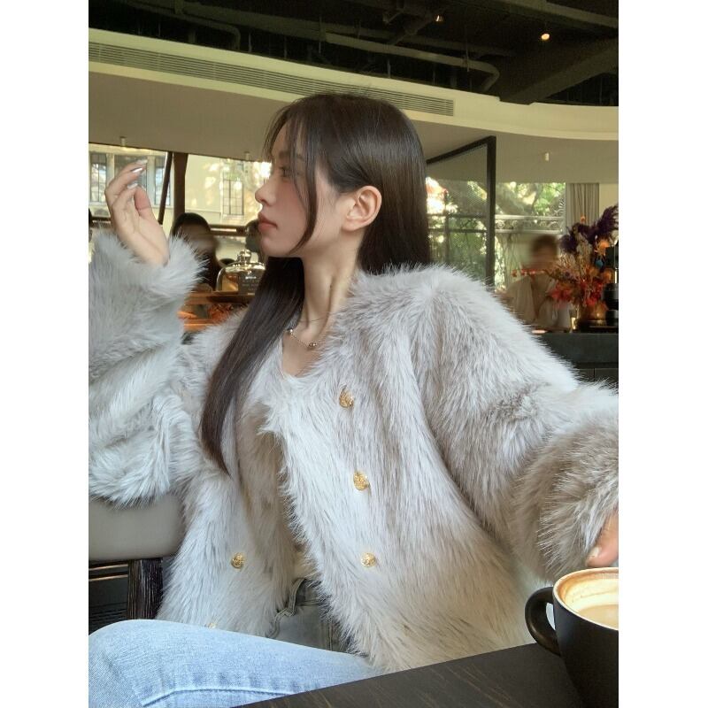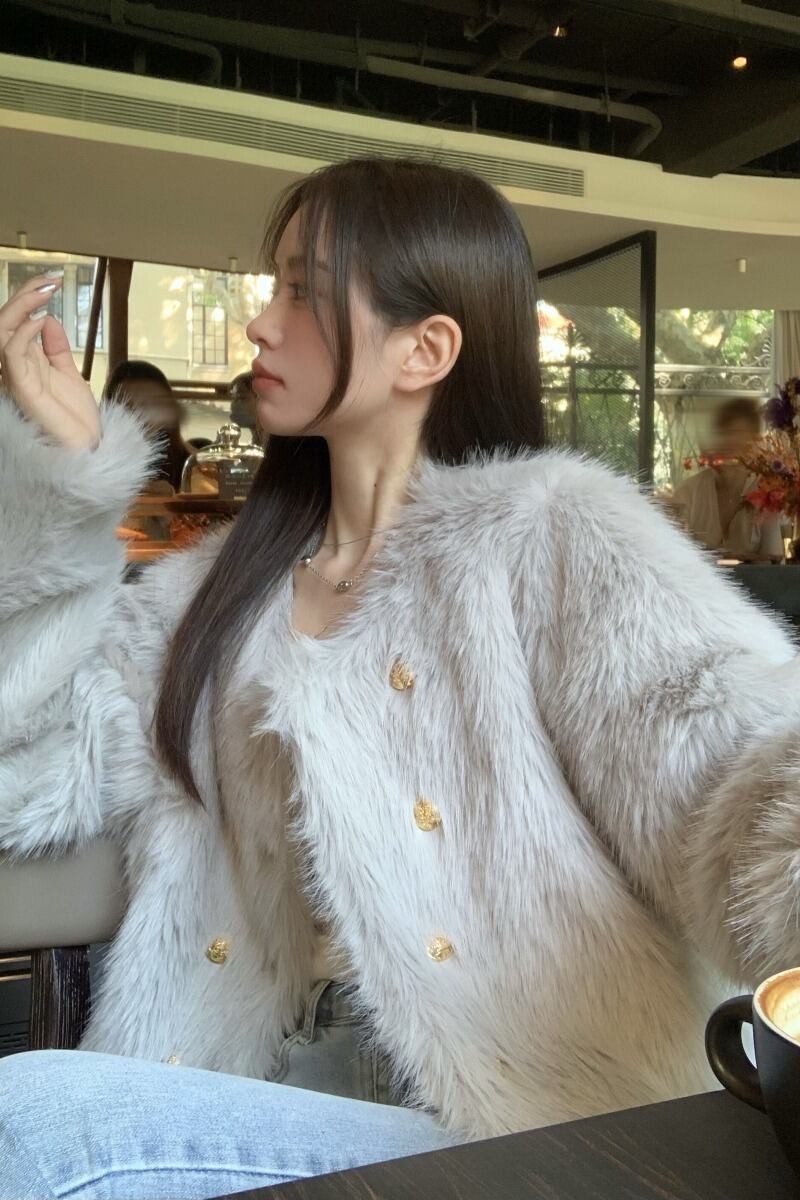 レトロファッションフェイクファーコート女性の 2023 春と秋の新しいオールマッチデザイン感覚ルーズシングルブレストカーディガントップ スプリング 春物 オータム 秋物 0921934703330102