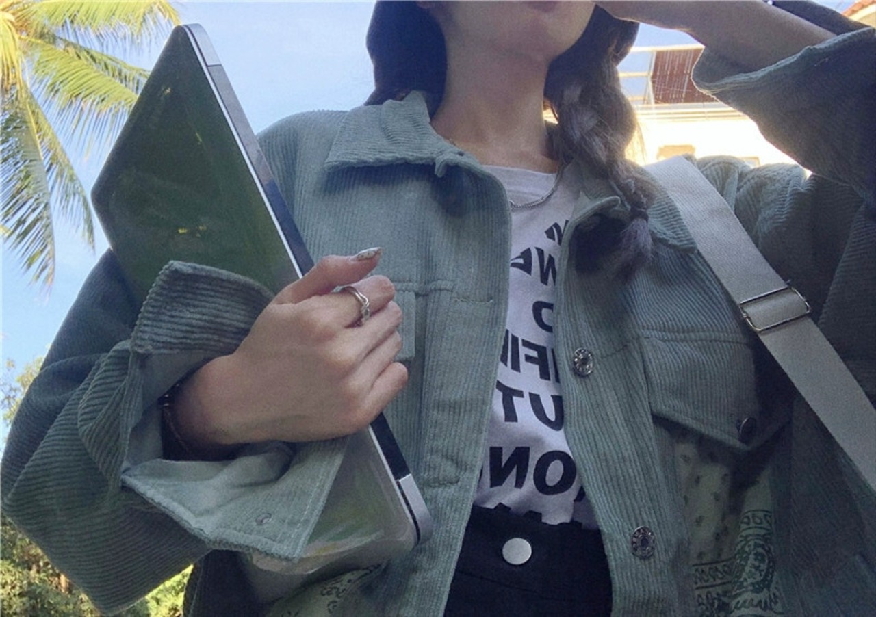 アメリカンレトロデザインステッチデニムジャケット女性の春と秋2023新しいルーズオールマッチコーデュロイジャケット スプリング 春物 オータム 秋物 0921966865071951