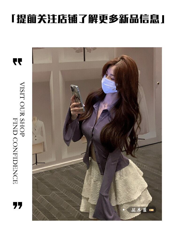 雰囲気紫長袖 Tシャツ女性 2023 春の新しい自己修養痩身純粋な欲望風カーディガントップ潮 ロング スプリング 春物 ピュア パープル 0921934869972993