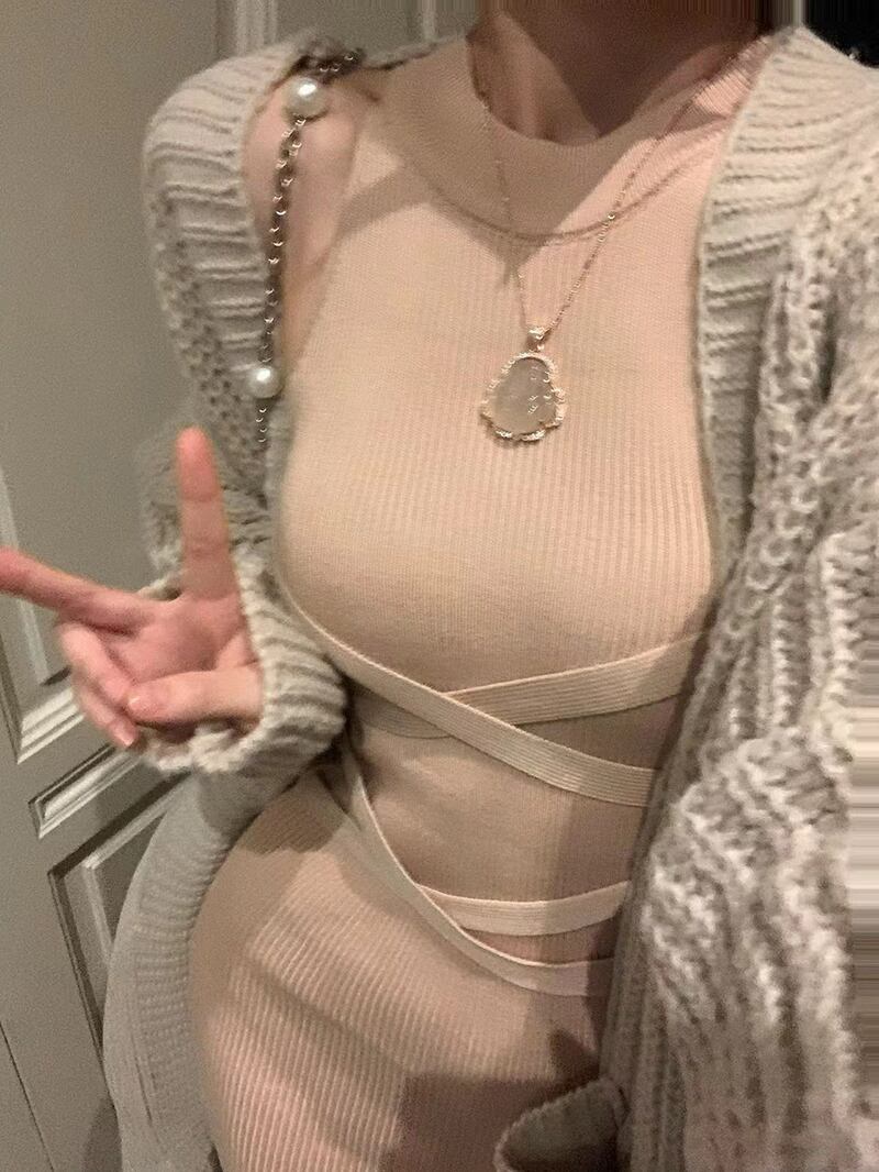 色:アプリコットパッケージヒップドレス,カーディガンジャケットワンピース