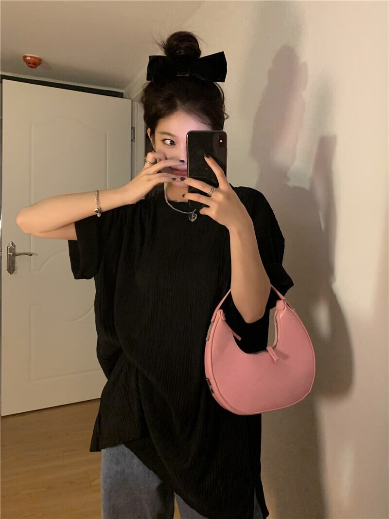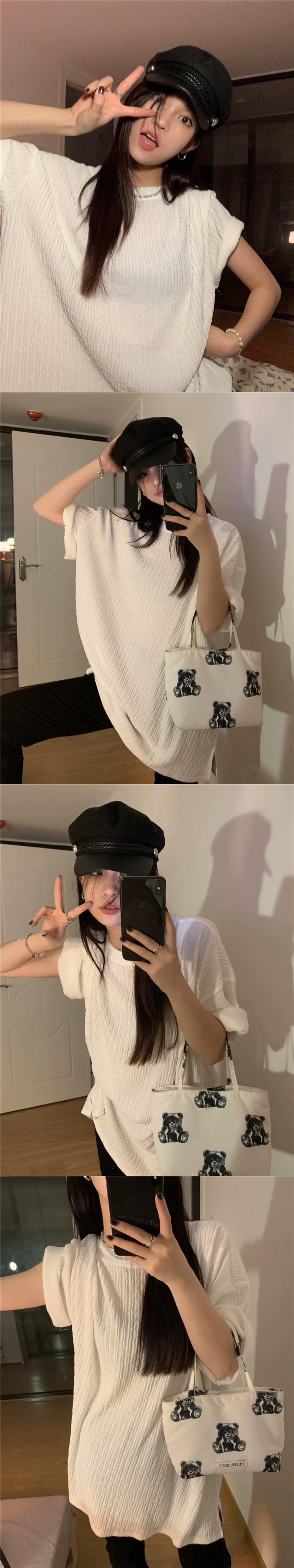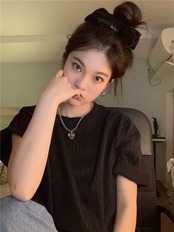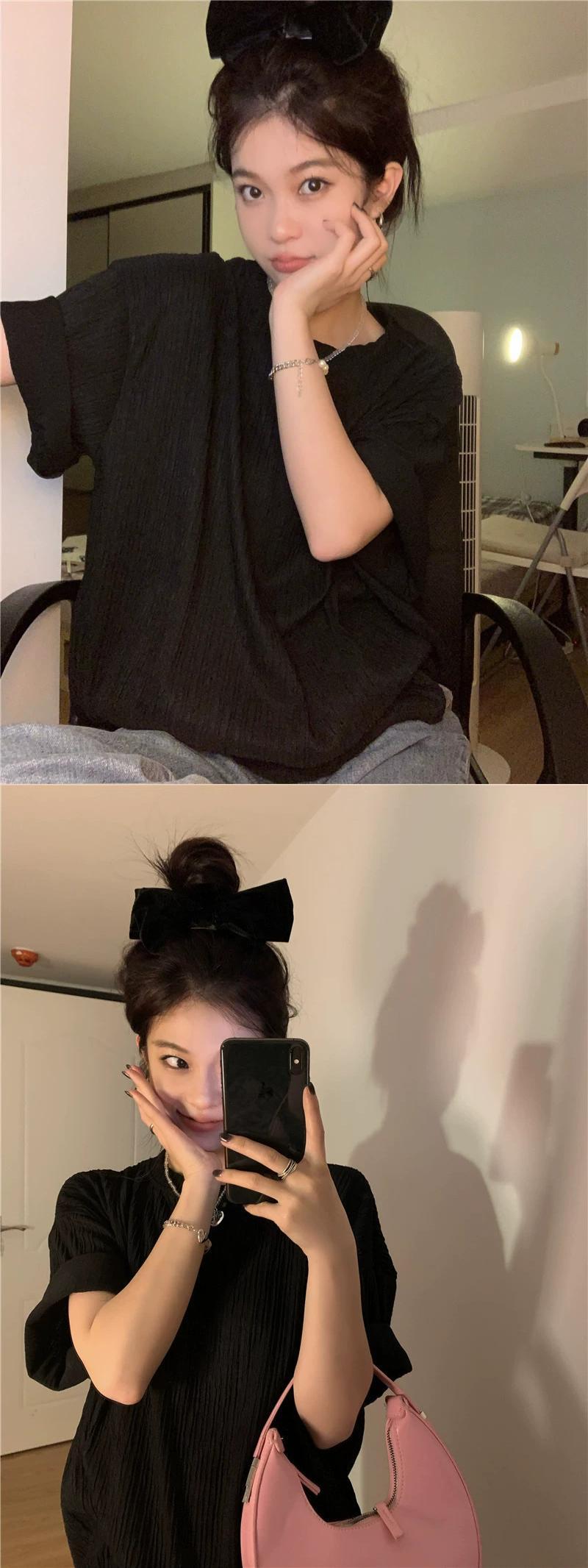 ホワイト怠惰なスタイルのプリーツ半袖 T シャツの女性の 2023 夏の新バージョンルーズで汎用性の高いミドル丈のトップ サマー 夏物 Tシャツ 0921932307946151