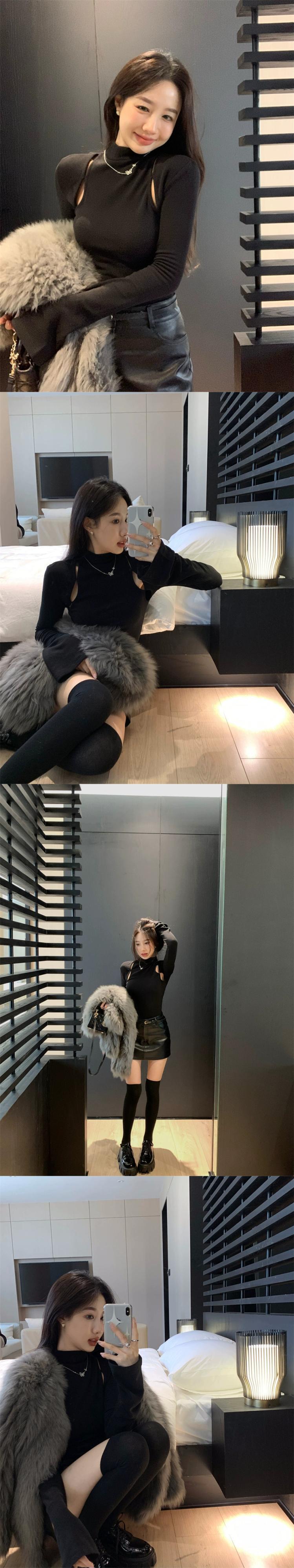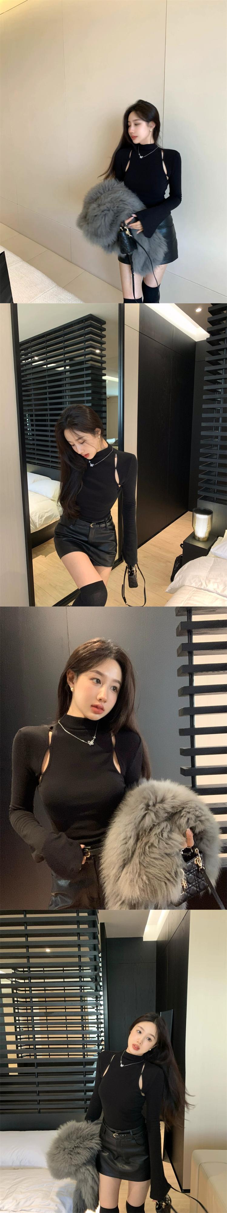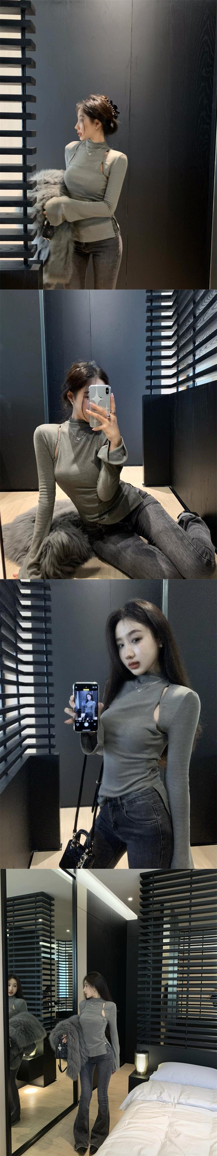 ハイネック中空プルオーバーセーターのバージョンの女性の 2023 年春の新しいオールマッチ自己修養薄底シャツトップ潮 スプリング 春物 0921956843655692