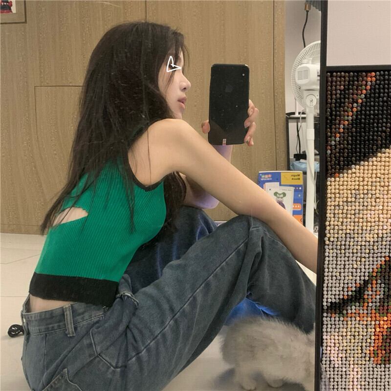 バージョンデザイン 色感コントラスト キャミソール レディース 2023年夏新作モデル こだわりマシン バックホロー ノースリーブ トップ潮 サマー 夏物 0921955645352685