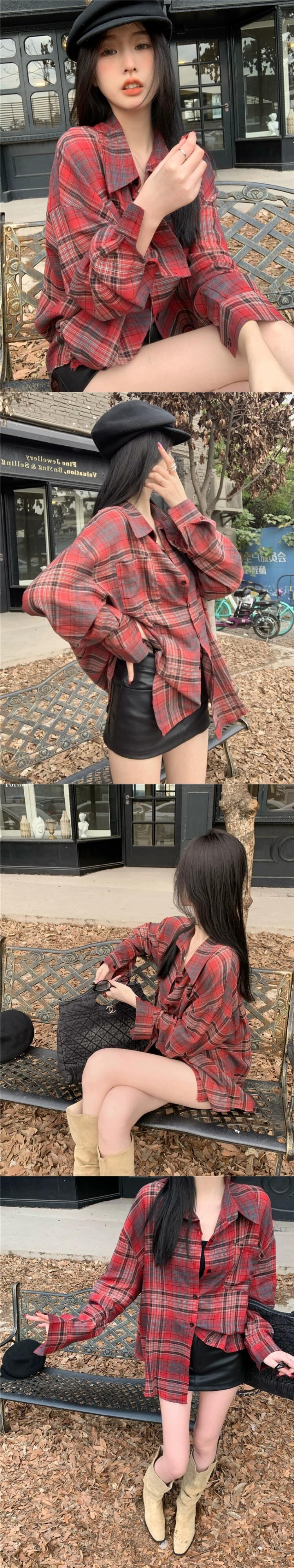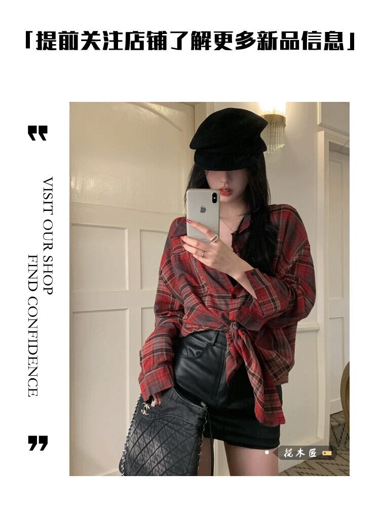 レトロチェック柄ルーズ長袖シャツ女性の夏の 2023 新しいミッドレングススリムシングルブレストカーディガンシャツ潮 ロング サマー 夏物 0921987133094718