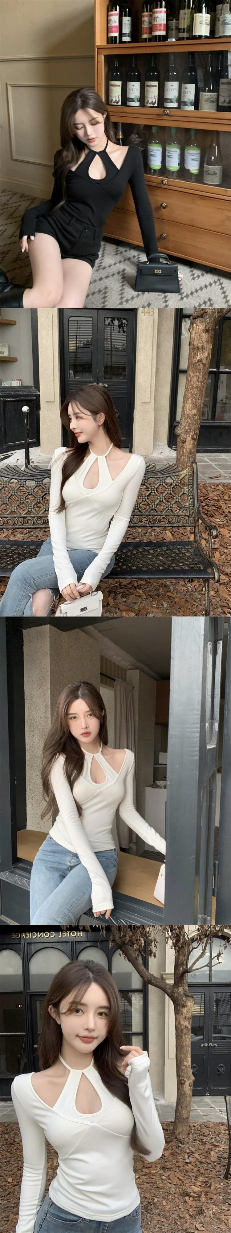優しい風セクシーな純粋な欲望ぶら下げネック長袖 tシャツの女性の 2023 春の新しい痩身薄い底シャツトップ潮 ロング スプリング 春物 ピュア 0921990925751061