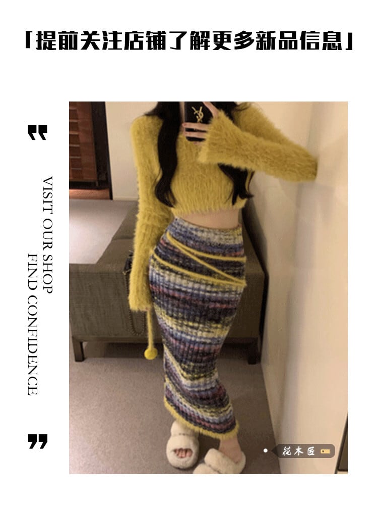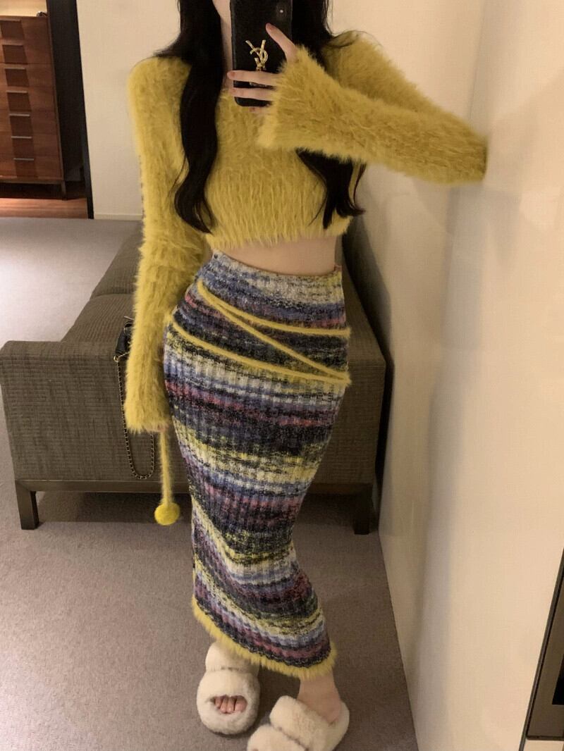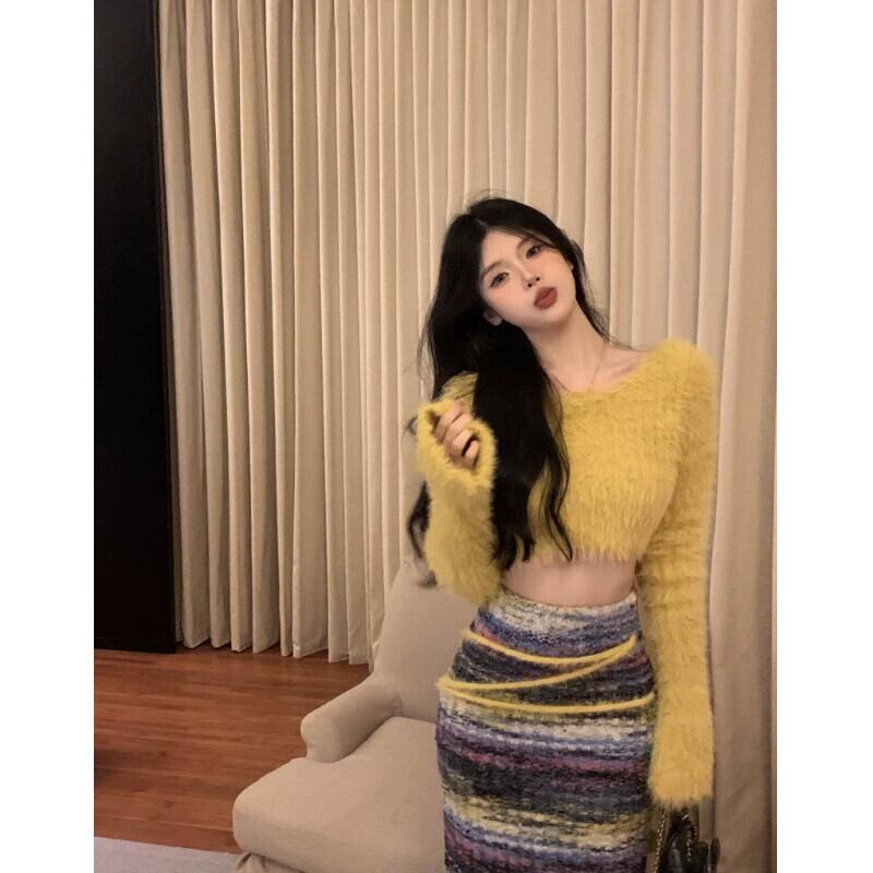 有能ジンジャーイエロープルオーバーセーター女性の春と秋2023新しいハイウエストスリムショートセクションへそニットトップ ハイウェスト スプリング 春物 オータム 秋物 0921949498666198