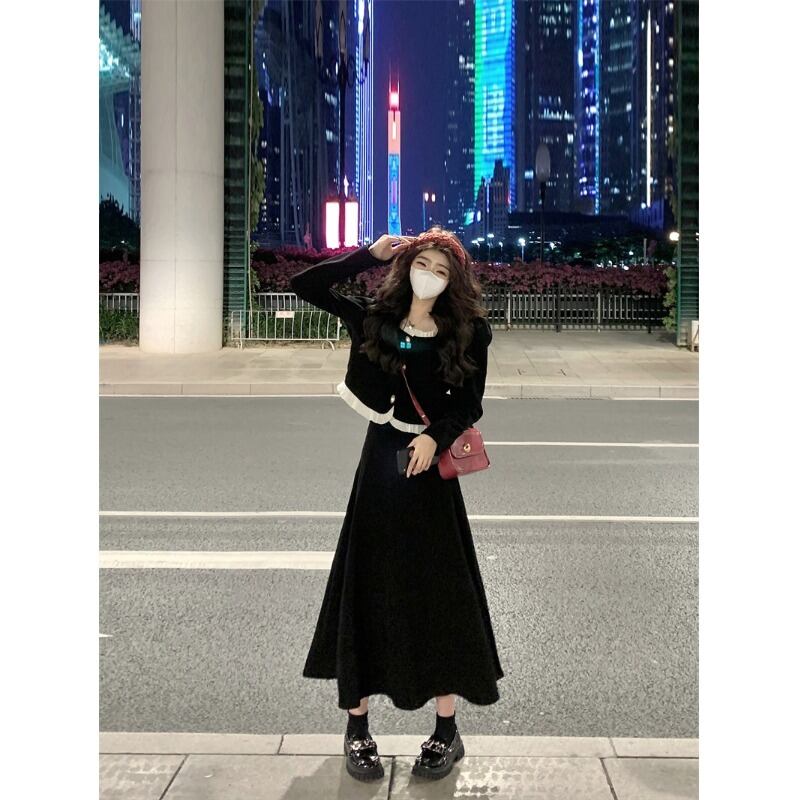 小さな香りの風スーツスカート女性の春と秋の 2023 新しい肥厚スクエアカラー菌トップスリムスカート 2 点セット スプリング 春物 オータム 秋物 スクウェア 0921918280140123